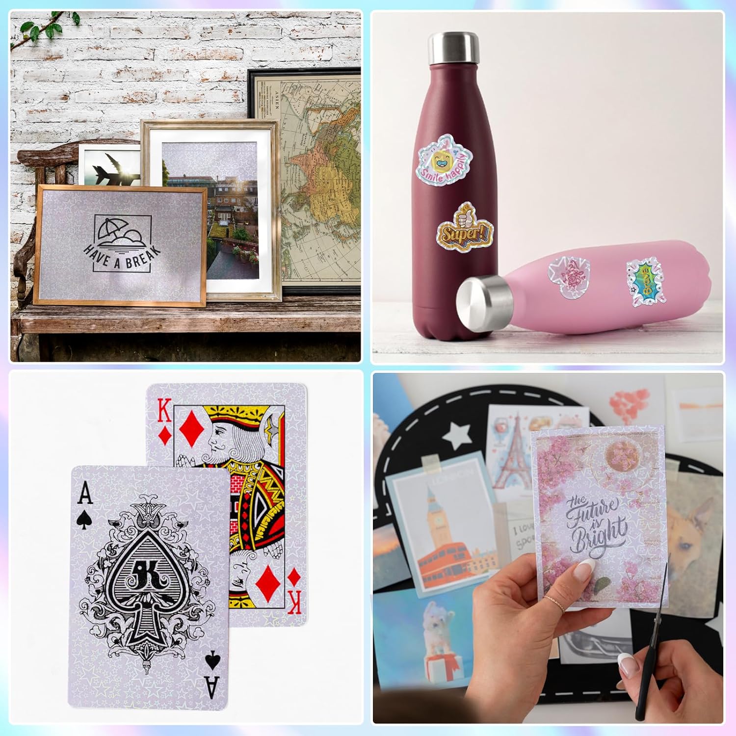 - Wide Range of Uses: This holographic transparent sticker paper set can be used for home decoration, scrapbooking, mirrors, banners, stickers, decals, laptops, windows, lettering, graphics, signs, and many other smooth and dry surfaces.