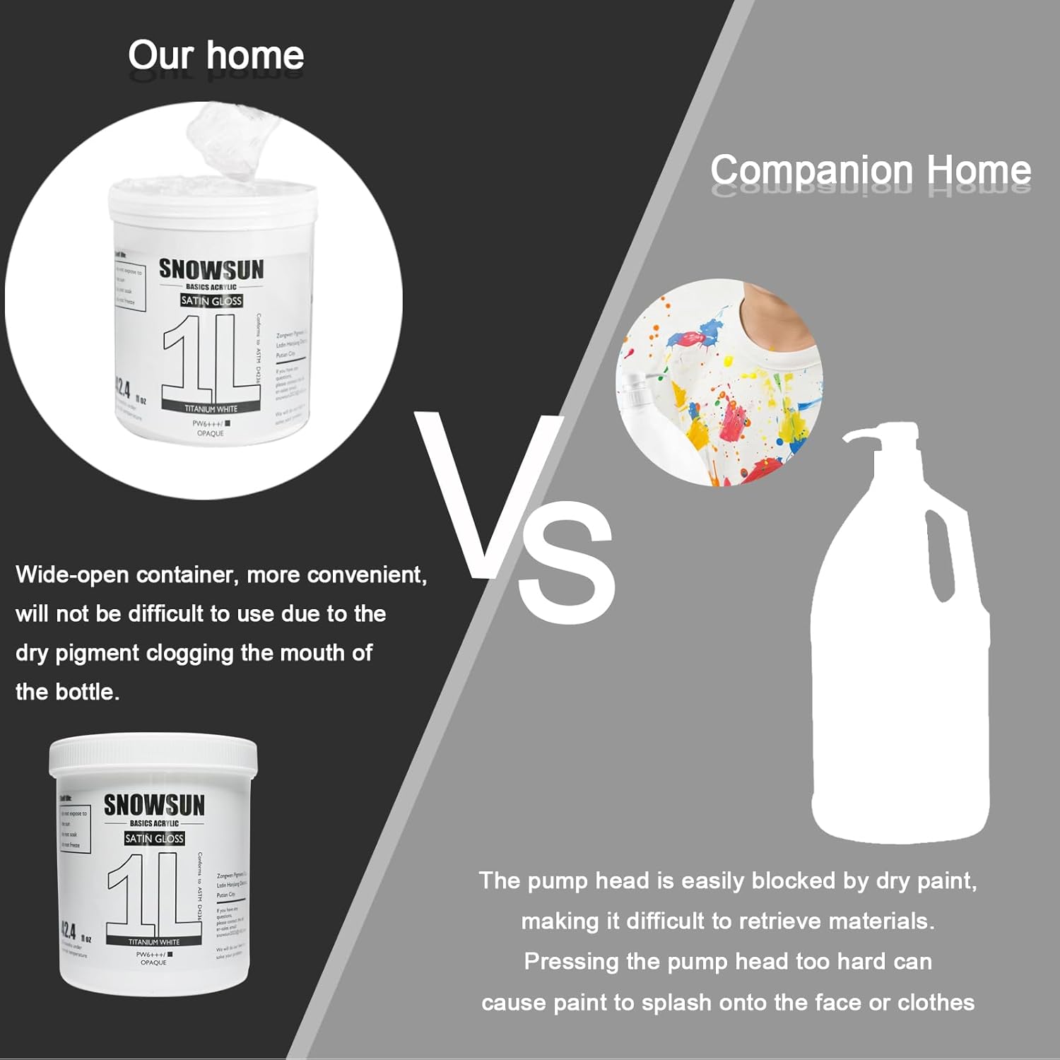 SNOWSUN Basics Titanium White Acrylic Paints, Large Bulk Acrylic Paint (42.4 oz, 1000ml) Non Toxic Gloss Heavy Body Art Paint for Multi-Surface, Ideal for Canvas Wood Ceramic Fabric and Nail Art Leather, Stone Craft, for Artists & Beginners