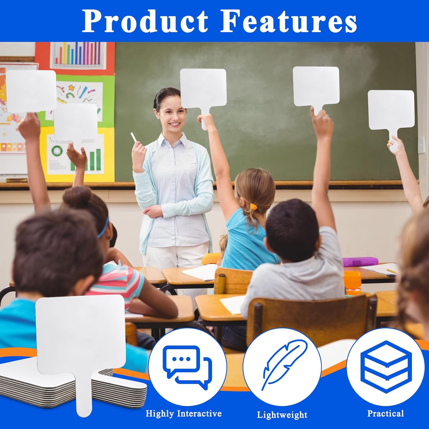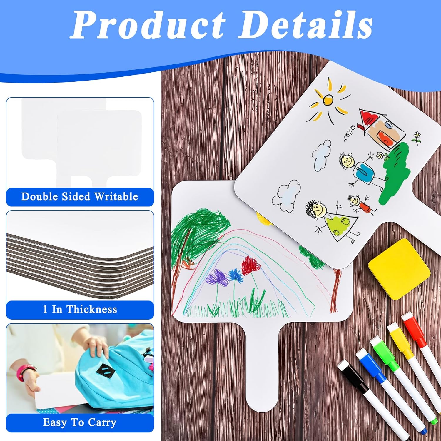 24 Pcs Dry Erase Answer Paddle, 10 x 8 Inch Auction Paddles with Markers and Erasers, Handheld White Board with Handle for Teaching Meeting Bidding Voting Games (Double Sided)