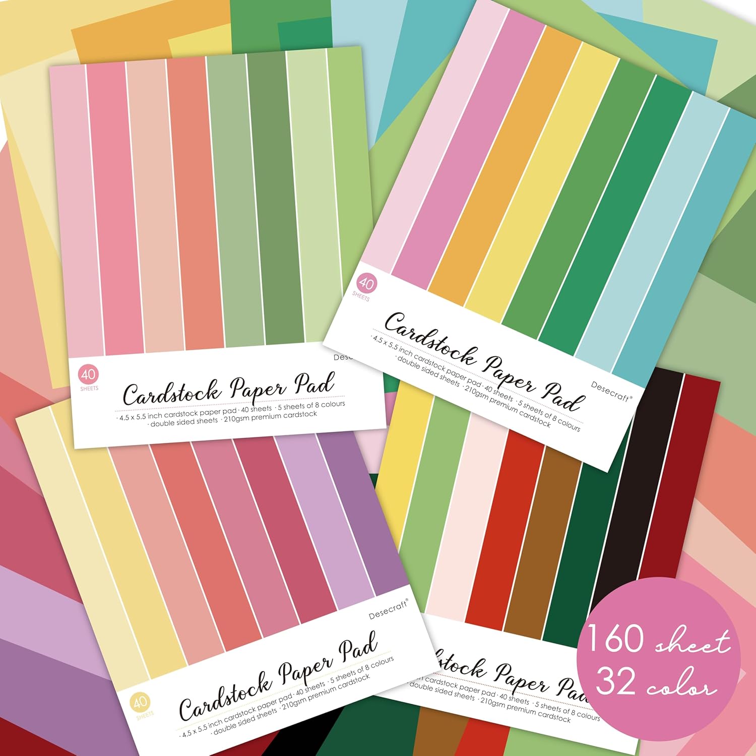 160 sheets Essential Variety Pack Cardstock Paper Pad 4 Pack 32 colors Scrapbook Decorative Paper for Card Making Journaling Origami Scrapbook Paper Scrapbooking Supplies