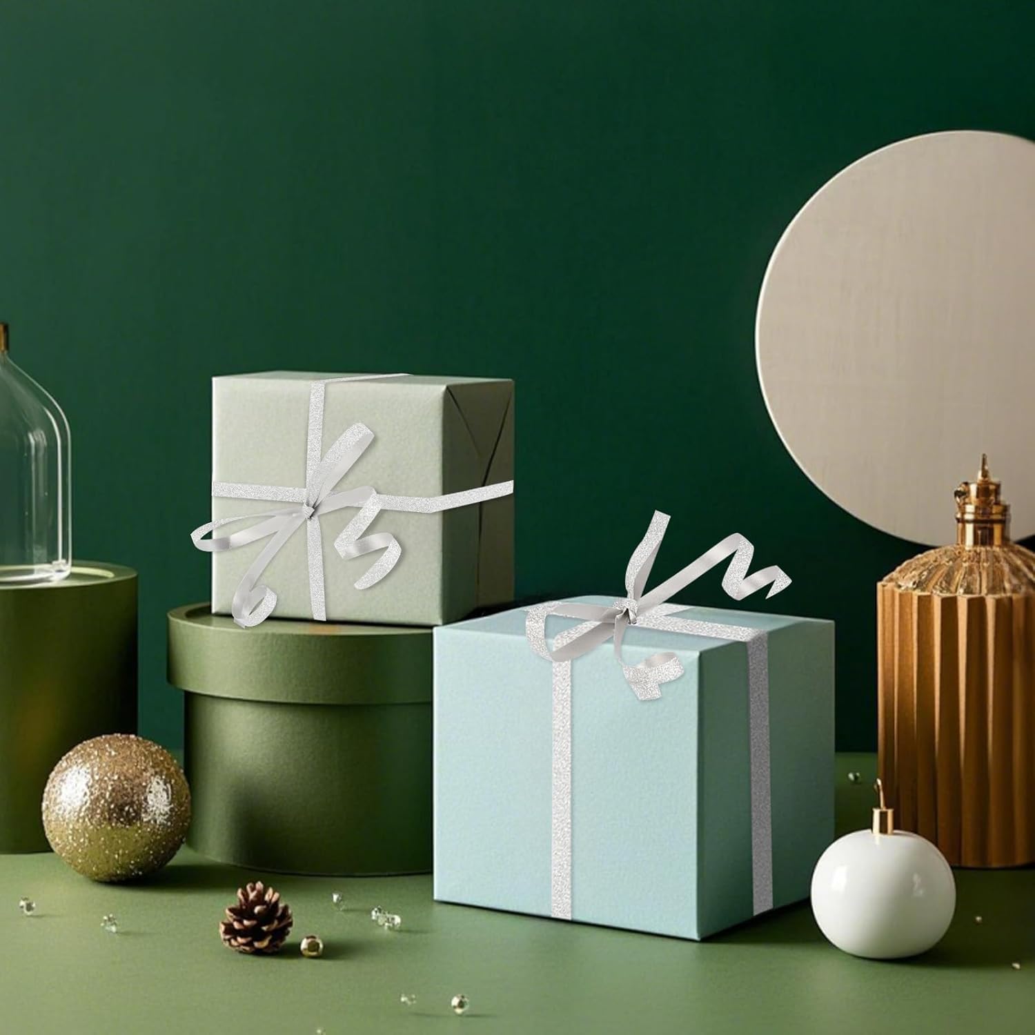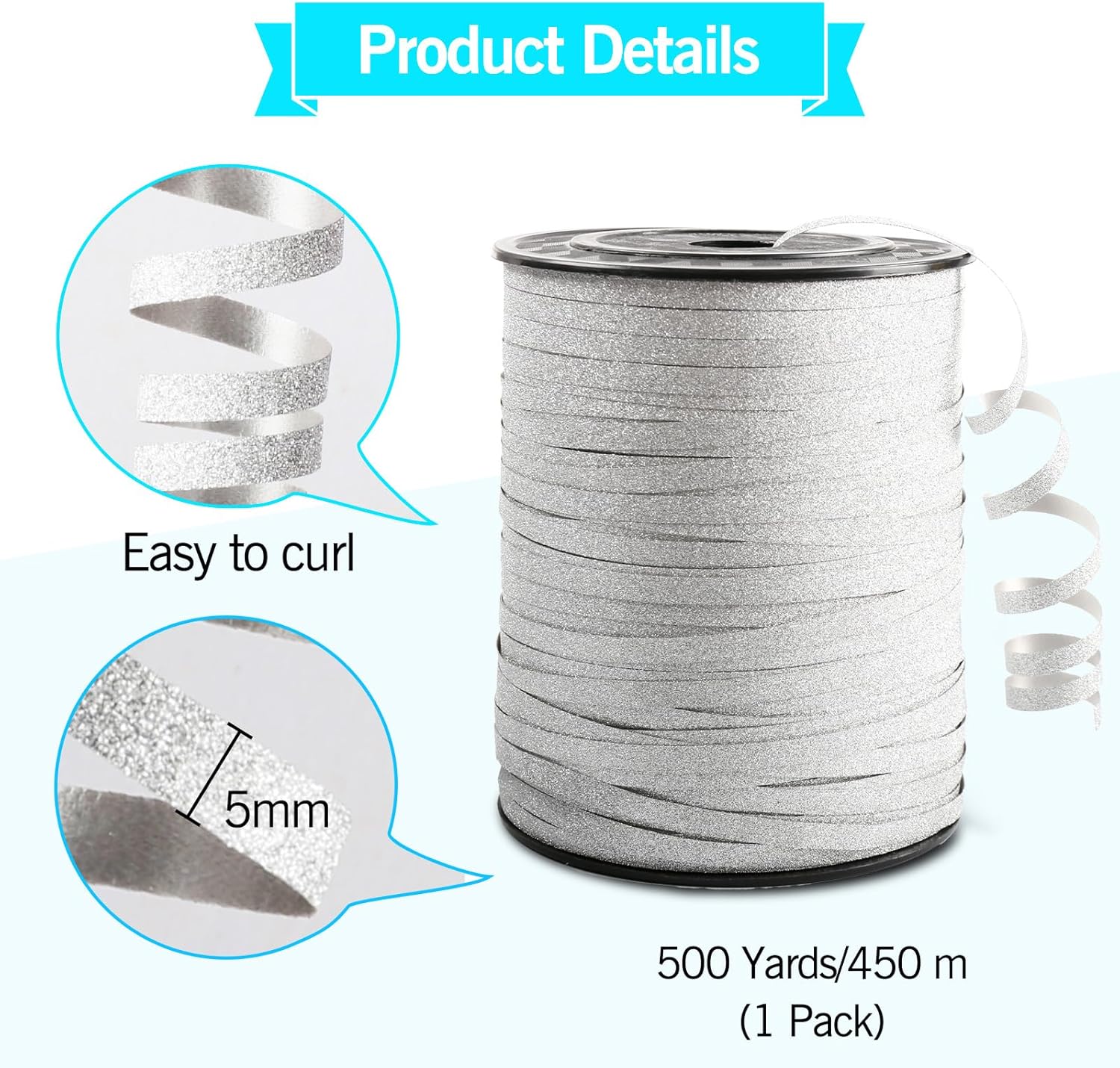 Silver Curling Ribbon, 500 Yard Christmas Glitter Curly Ribbons for Gift Wrapping, Thin Balloon String Ribbon for Balloons Arch, 3/16" Gift Ribbons for Baby Shower, Florist Flower Party Decorations