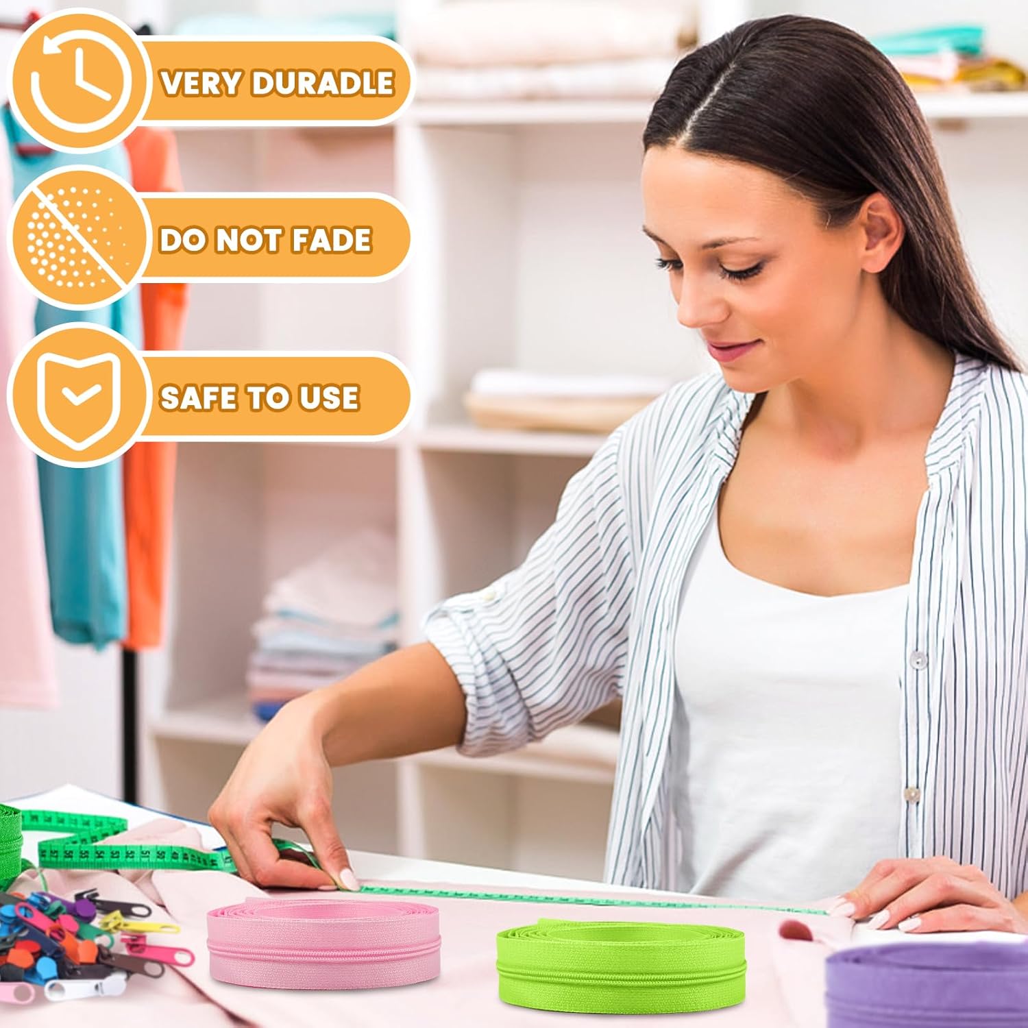 - Wide application: our colorful nylon coil zippers and sliders are good supplies for sewing pants, jeans, skirts, bags and other items, suitable for tailor craft project, costume design, kids clothing, bags accessories, costume decorations etc