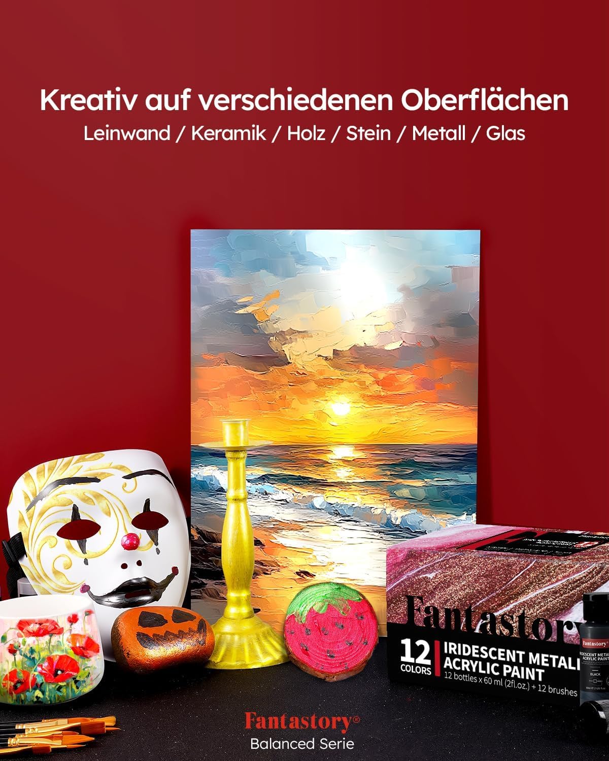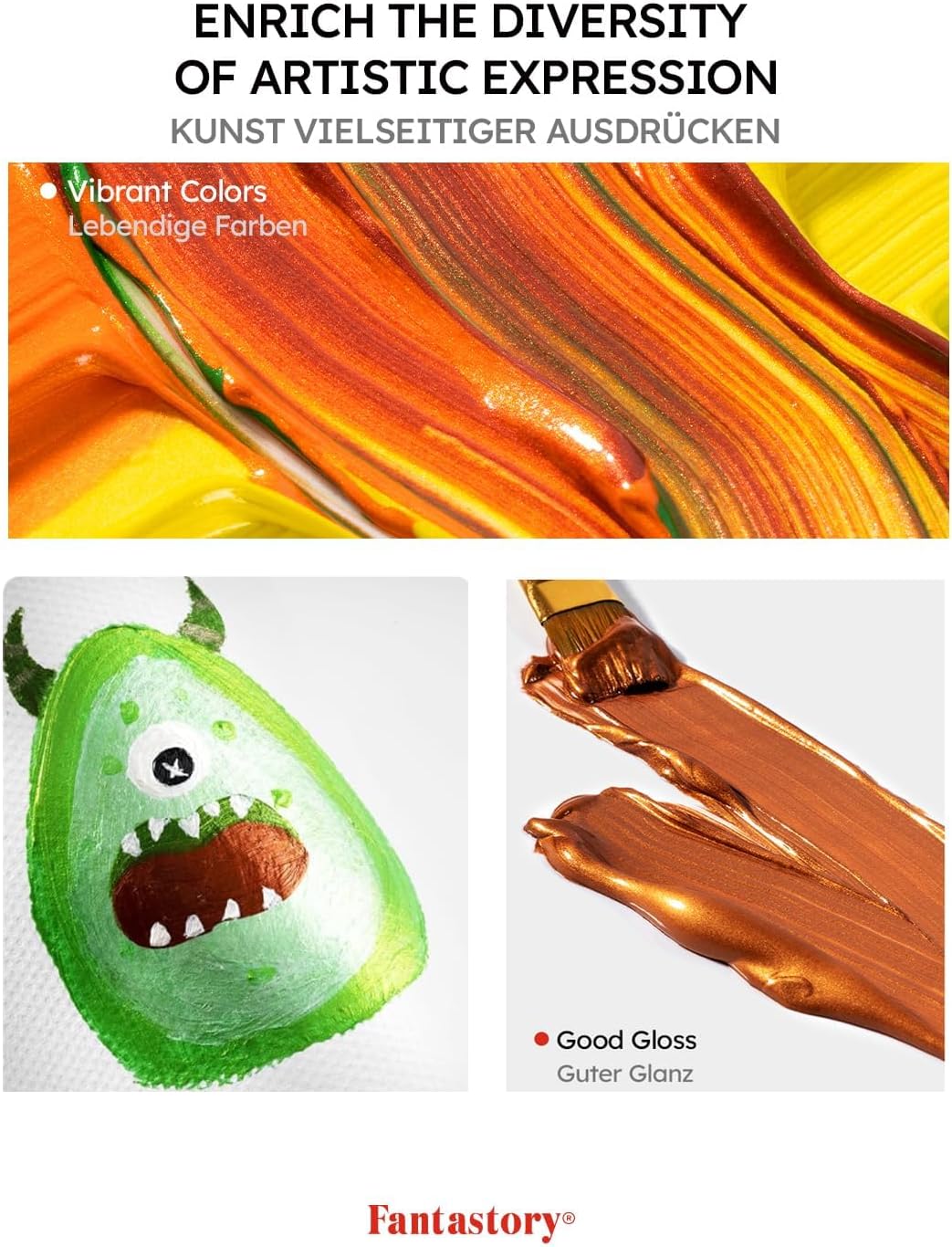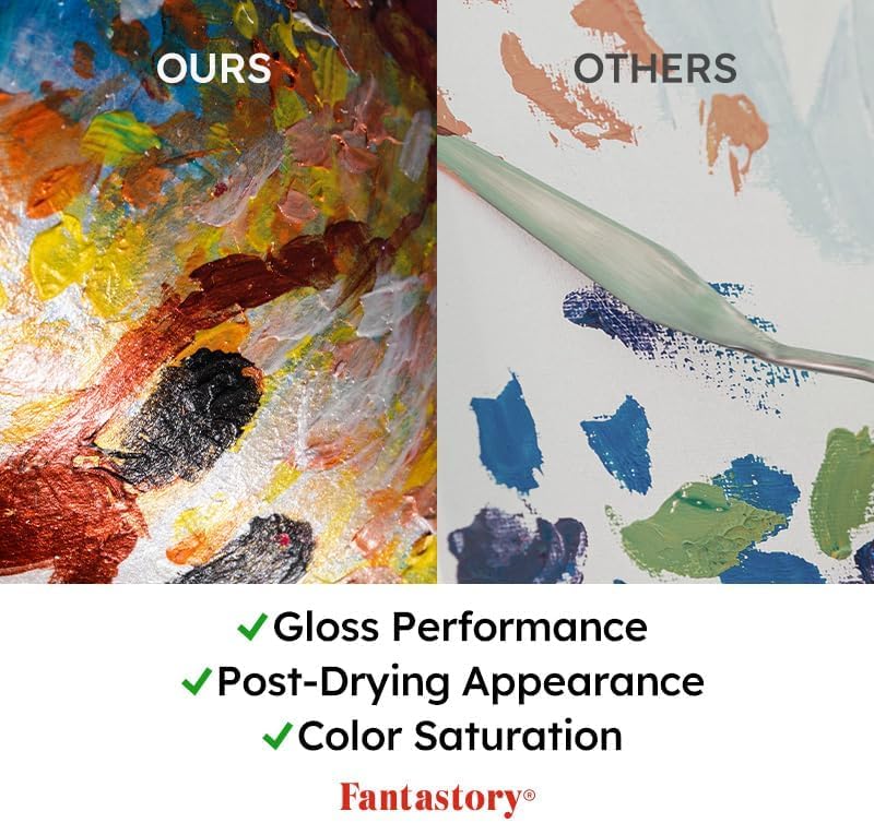 - SHIMMERING HIGH-PIGMENT METALLIC COLORS: Fantastory 12-Color acrylic paint set features unique shimmering metallic hues with an exceptionally high pigment concentration and outstanding pigment deposition, offering exceptional coverage and unmatched color brilliance. Perfect for professional artists, painters, art instructors, dedicated hobbyists, and motivated beginners.