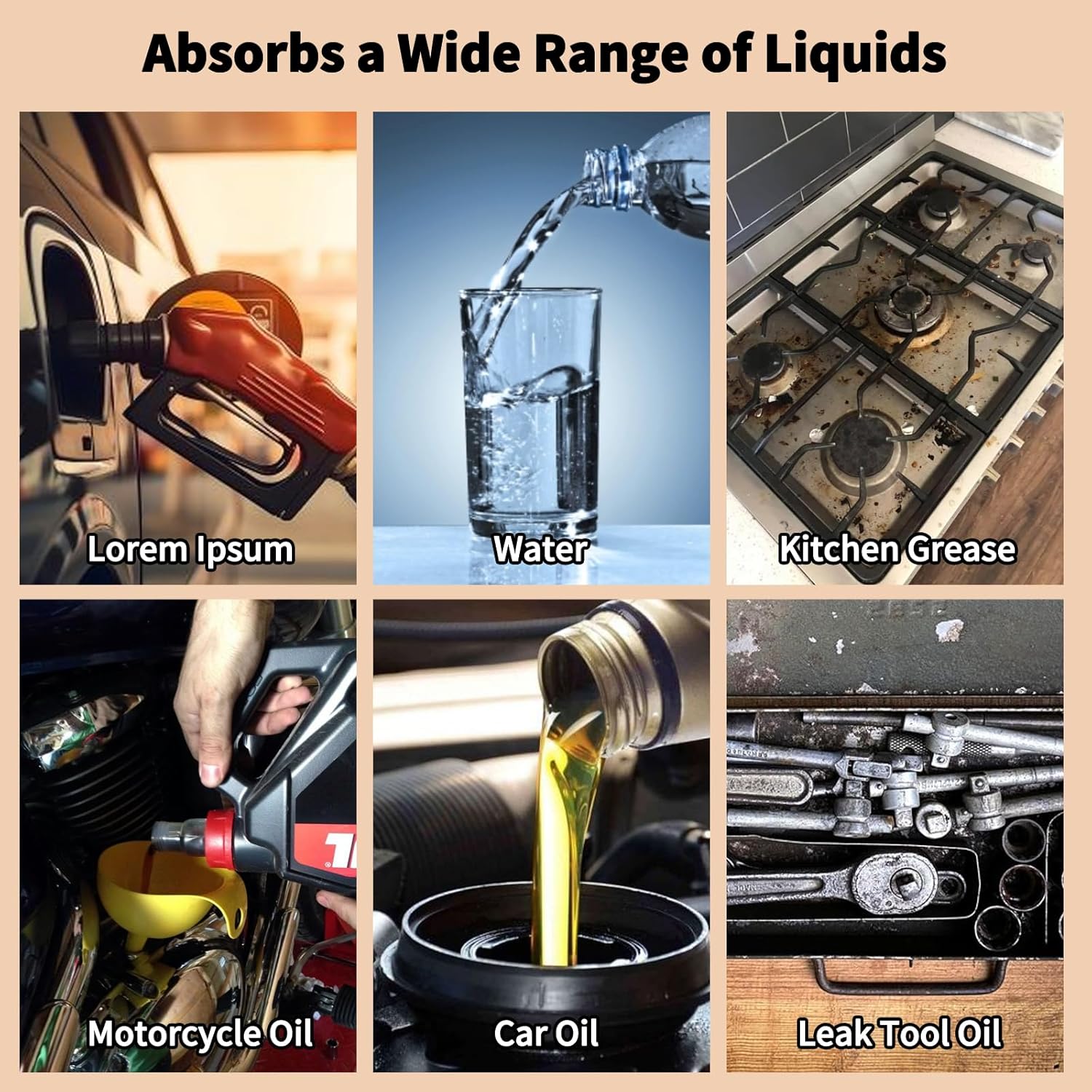 - INDUSTRIAL-STRENGTH ABSORPTION - Polypropylene mesh with quick-drain holes absorbs oil, grease, coolant, and water 3X faster than shop towels. Reusable - just squeeze and hang to dry