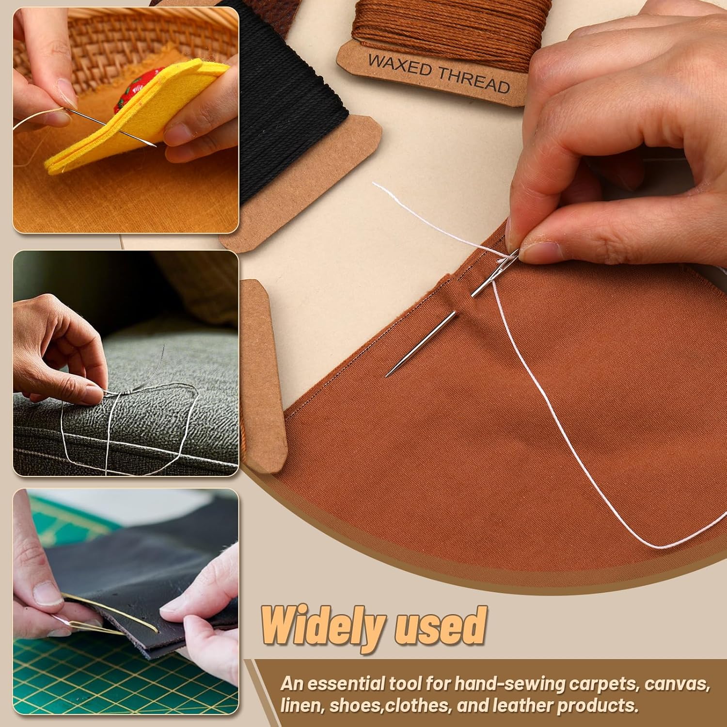 - Waxed Thread Kit: Our 0.8mm upholstery thread is made of polyester and is very strong, each roll of this heavy-duty thread has 21 yards, there are also 12 colors to choose from