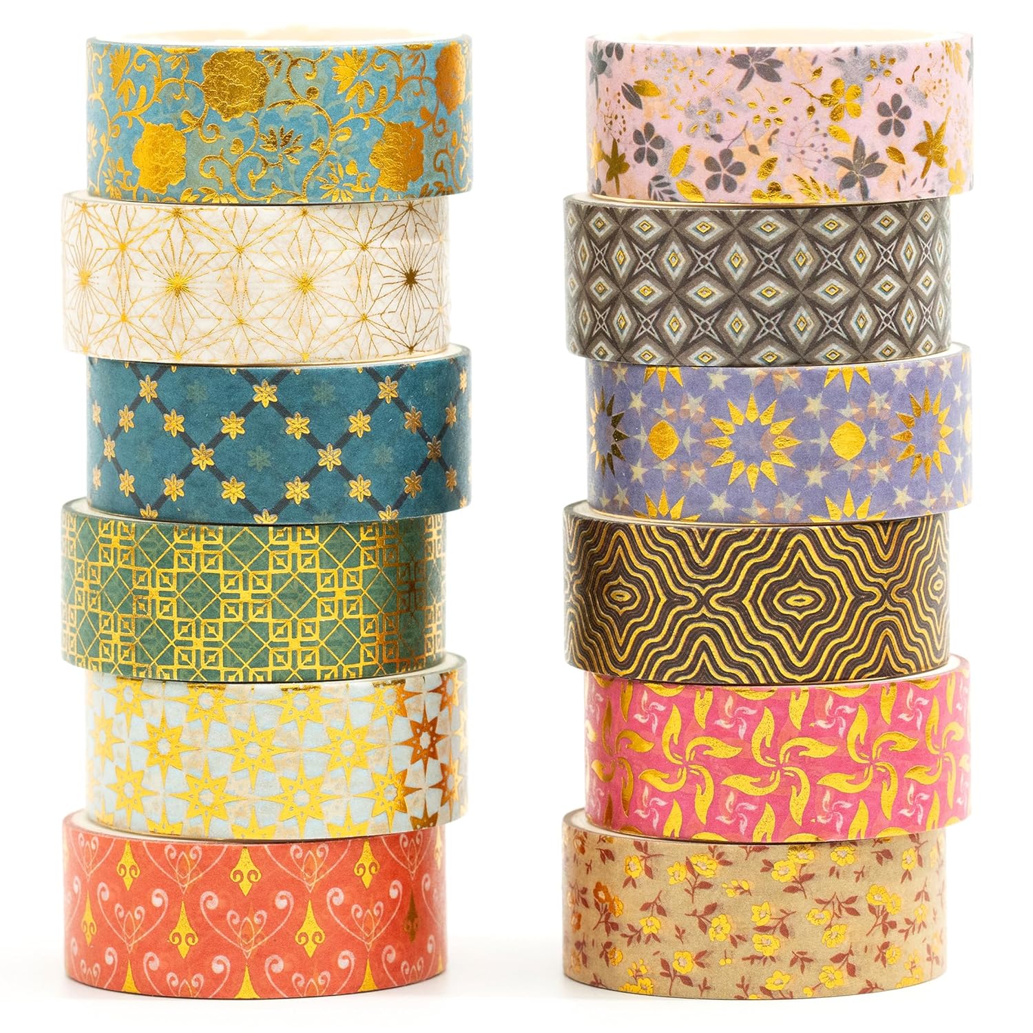 - 👍【EXQUISITE DESIGNS】Discover the perfect blend of artistry and elegance with our premium Washi Tape collection. Featuring a mix of vibrant designs, from florals to geometric patterns, enhanced with luxurious gold and silver foil accents, these tapes add a dazzling touch to any project.
