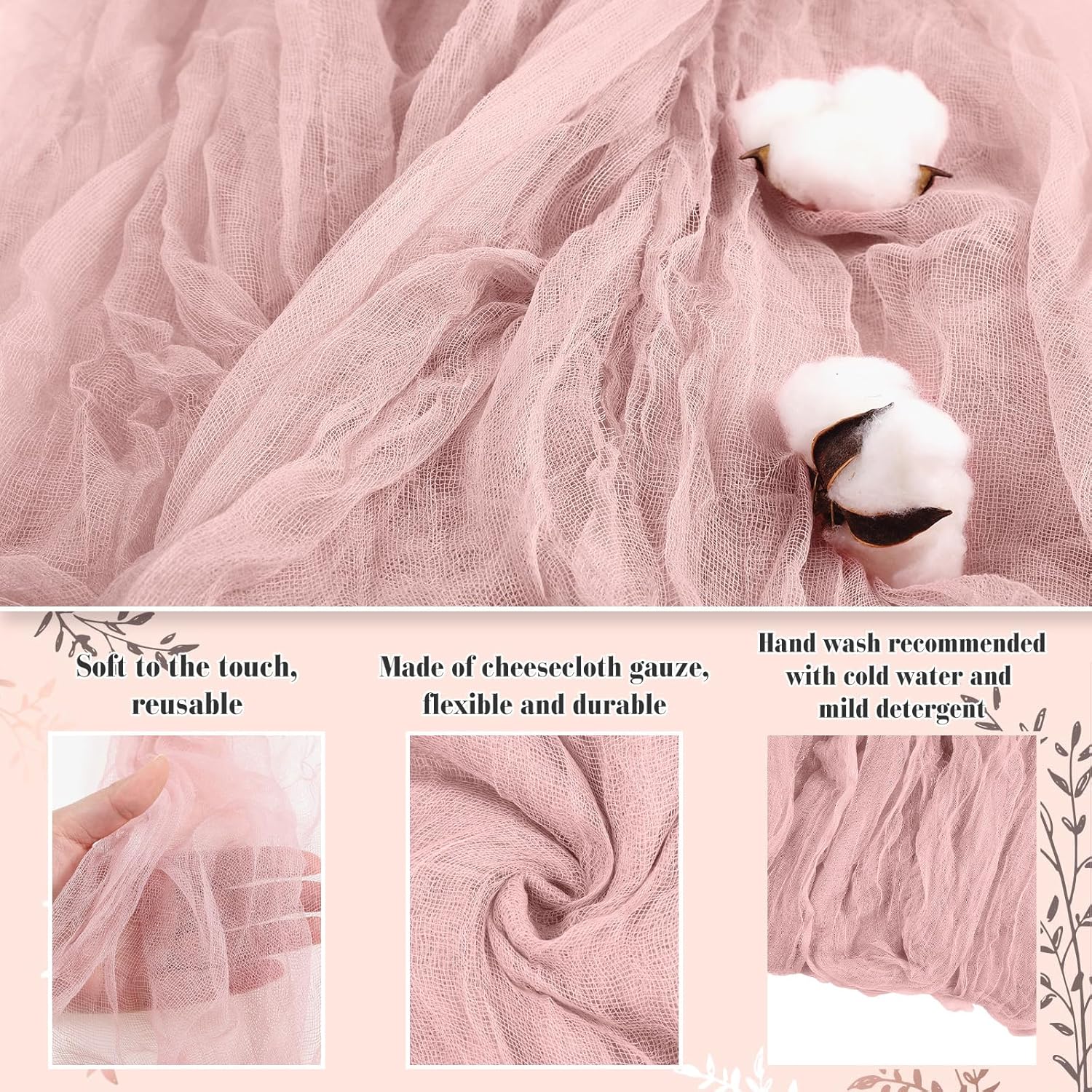 Boao Halloween Cheese Cloth 35.43 x 393.7 Inch Pink Cheesecloth Roll for Crafts Large Cotton Muslin Gauze Fabric for Halloween Outdoor & Indoor Spooky Decoration