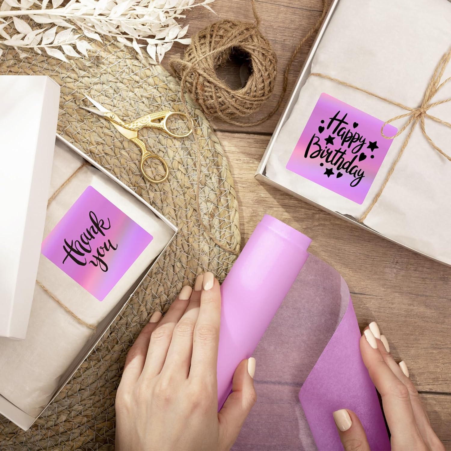 2" x 2" Square Thermal Labels Stickers, Holographic Thermal Stickers Labels, Self-Adhesive Glitter Direct Thermals Label for Small Business, DIY Design- Holographic Pink