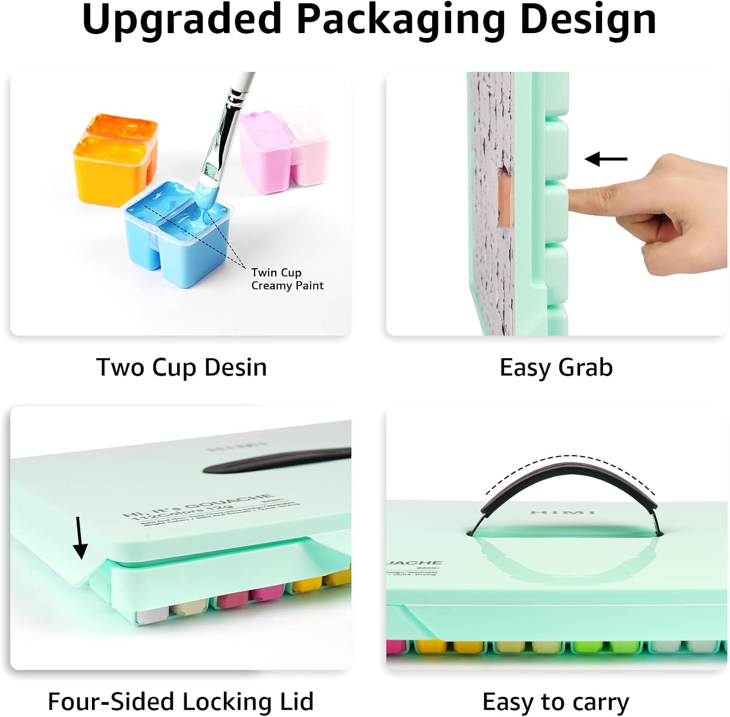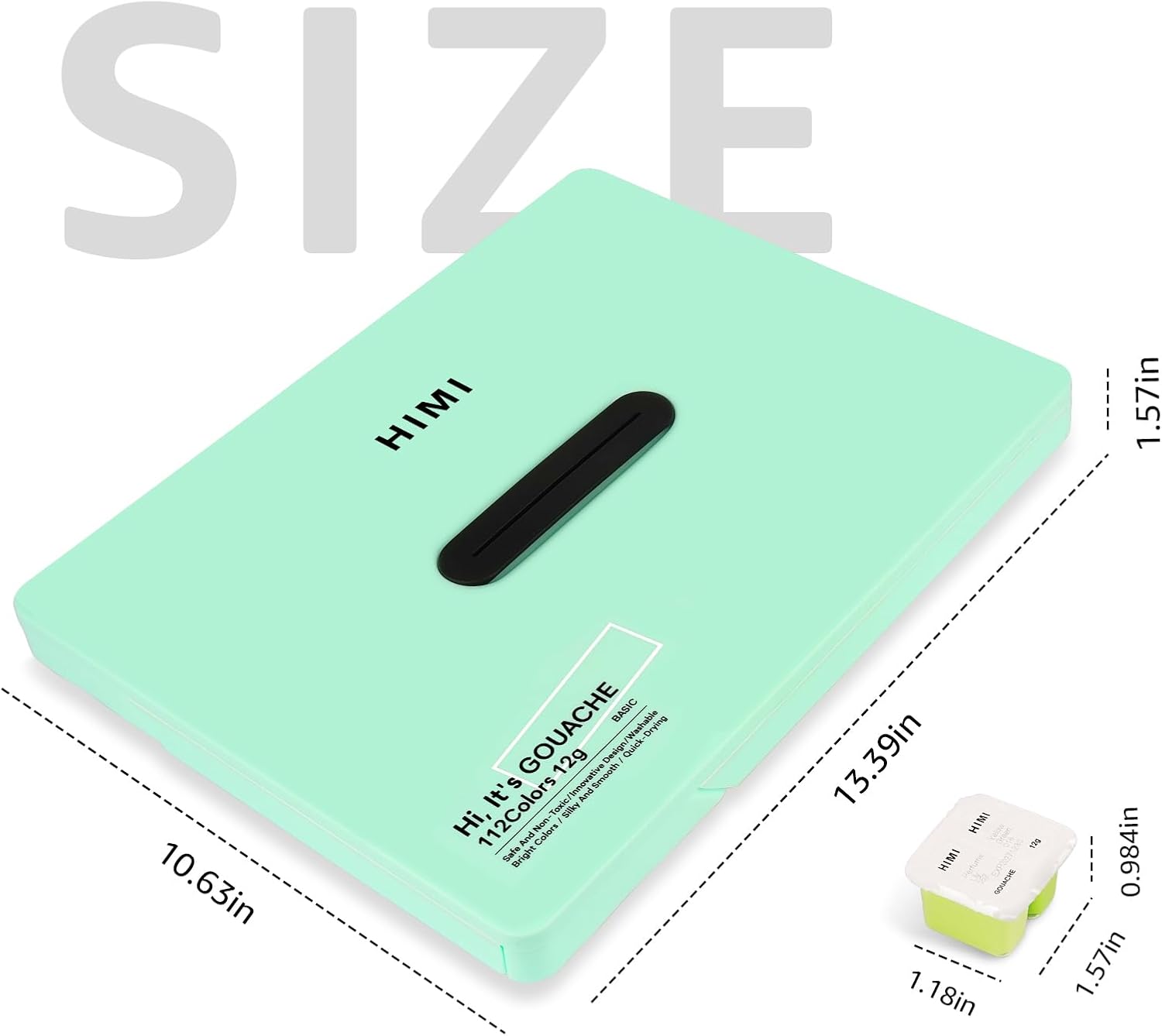 HIMI Gouache Paint Set, 112 Colors x 12g Twin Jelly Cup Design with Portable Case, Non-Toxic, Opaque Professional Paint for Canvas and Watercolor Paper | Beginners, Students, Artists