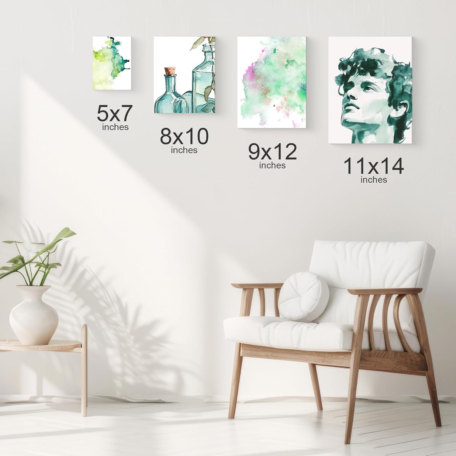 PHOENIX Watercolor Canvas Boards for Painting - 12 Multi Sizes Pack, 5x7,8x10,9x12,11x14 Inch, 100% Cotton Water Color Panels, 8 Oz. / 260g White Blank Medium Texture Flat Canvases