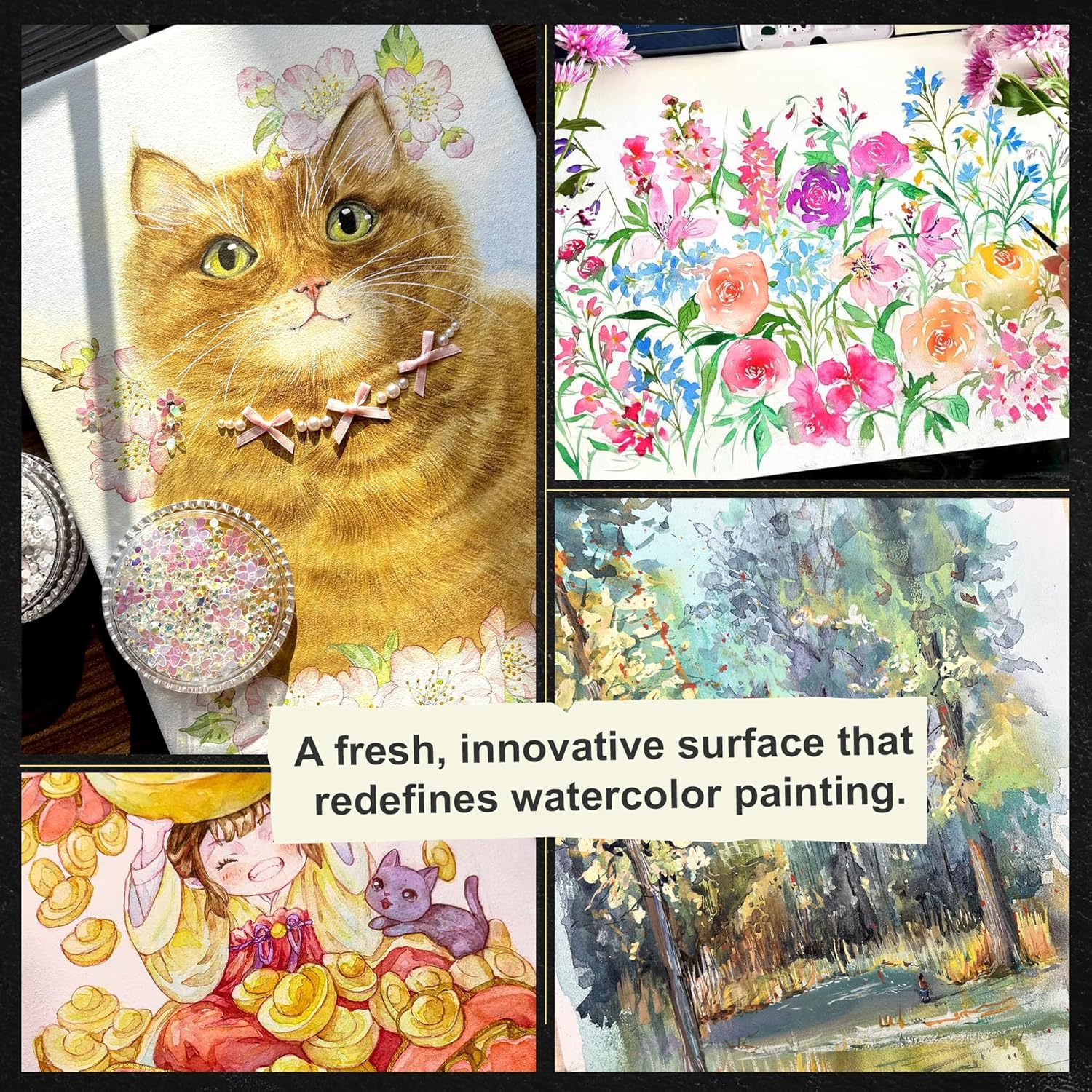 - Paper Like Experience - Made from cotton with medium texture, this time phoenix brings a more cold press watercolor paper painting experience with excellent water absorbing ability and better diffusion effects. The surface absorbs paints fairly and colors bloom naturally.