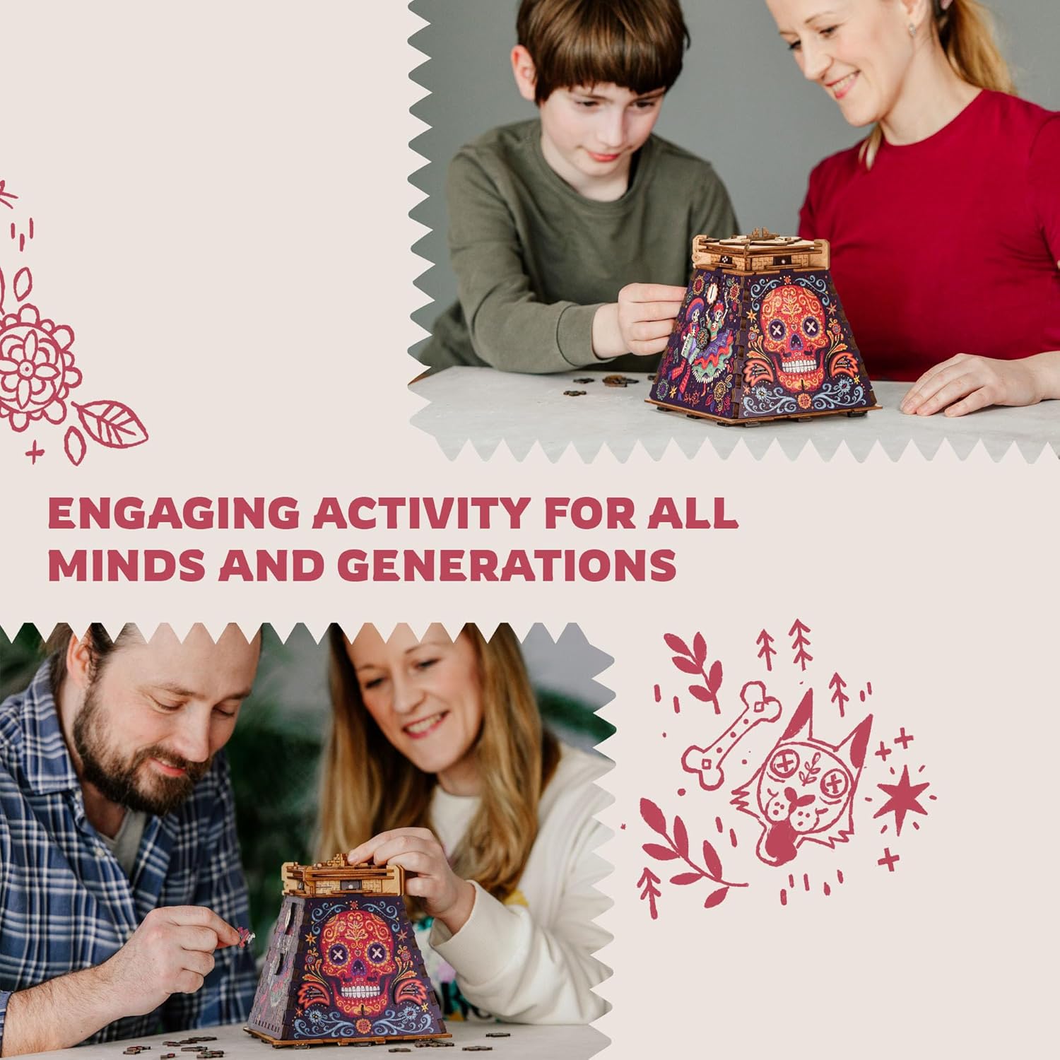 iDventure Cluepuzzle Expansion Day of The Dead | Wooden Puzzle with 200+ Pieces | Escape Room Game | Gift Box | 4 Designs | Puzzle Size 20x12 cm | Wooden Puzzles for Adults and 10+ | Gift | Hobby