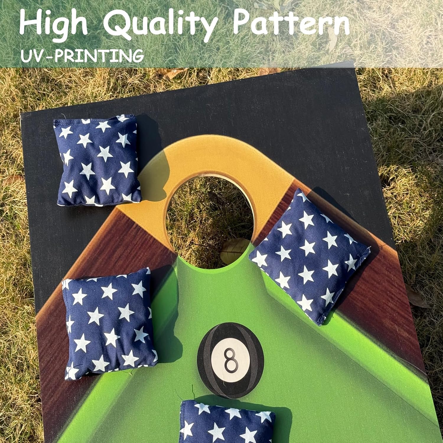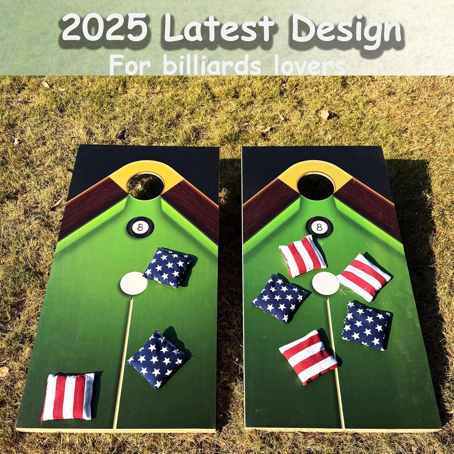 - Themed Cornhole Sets - Cornhole boards decorated with billard table element. A great way to show off your interests.The bright colors and unique design appeal to many people