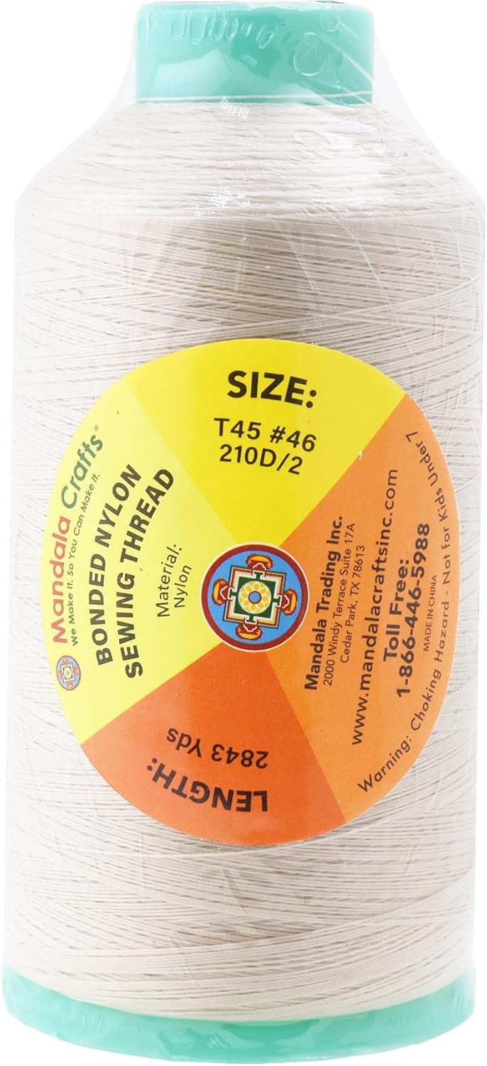 Mandala Crafts Bonded Nylon Thread Off White Heavy Duty Sewing Threads - 2843 YDs Size 46 210D T45 Tex 45 Thread for Leather Jeans Weaving Outdoor Marine Upholstery Threads