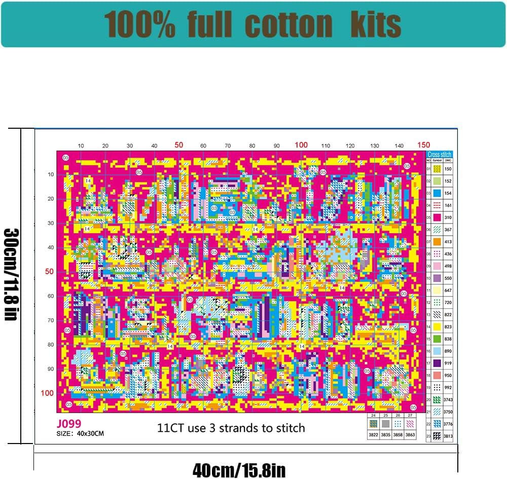 - Package:11.8*15.8inch, 2pc cross stitch needles, enough thread already sorted, English instructions,cross stitch patterns instructions,and 11CT Pre-printed stamped cross stitch fabric cloth. (11CT,without frame)