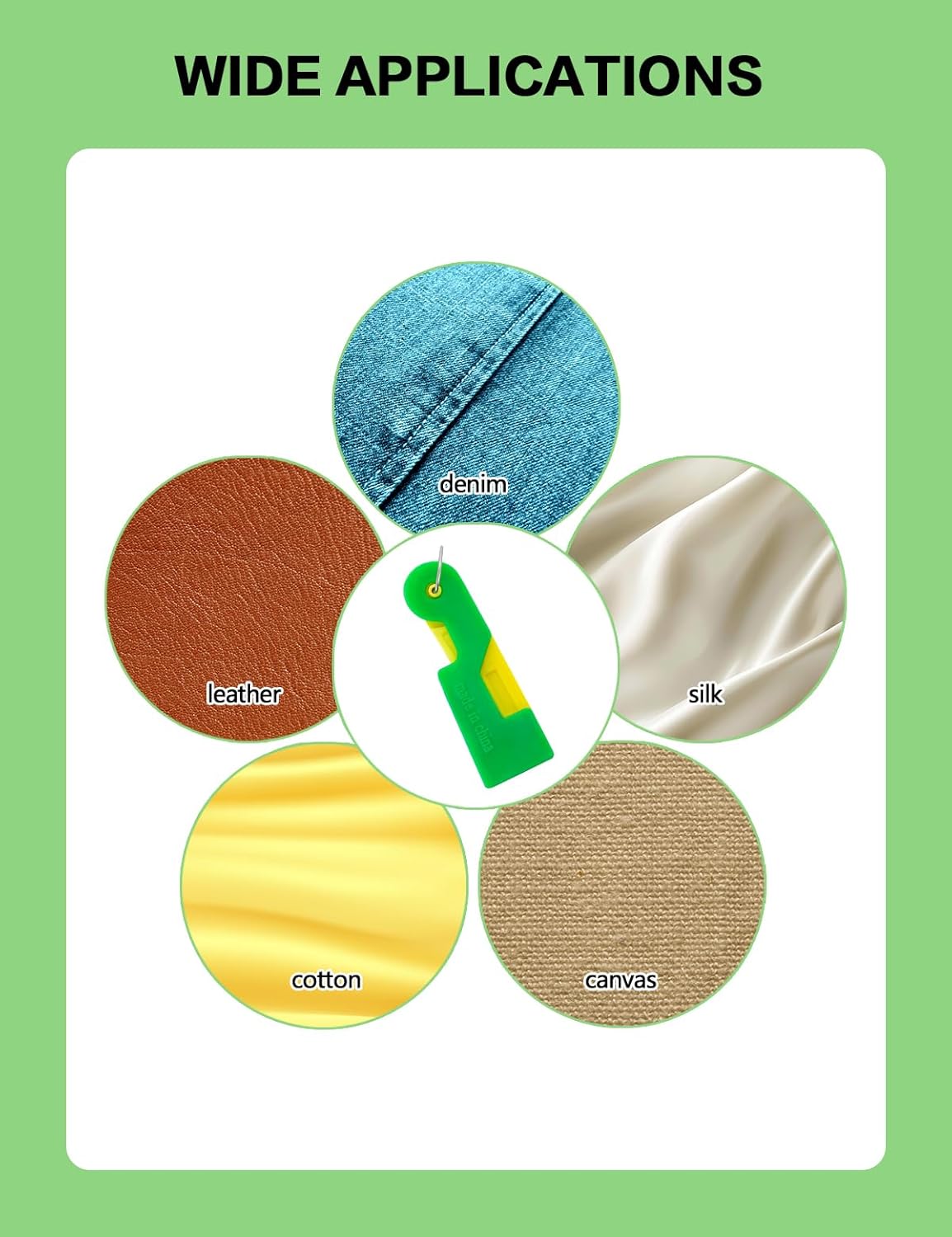 - Wide Applications: Suitable for versatile fabrics, including leather, denim, silk, canvas, and cotton. These automatic needle threaders for hand sewing accommodate different needle sizes,a good ideal for cross-stitch, decorative stitching, and embroidery.