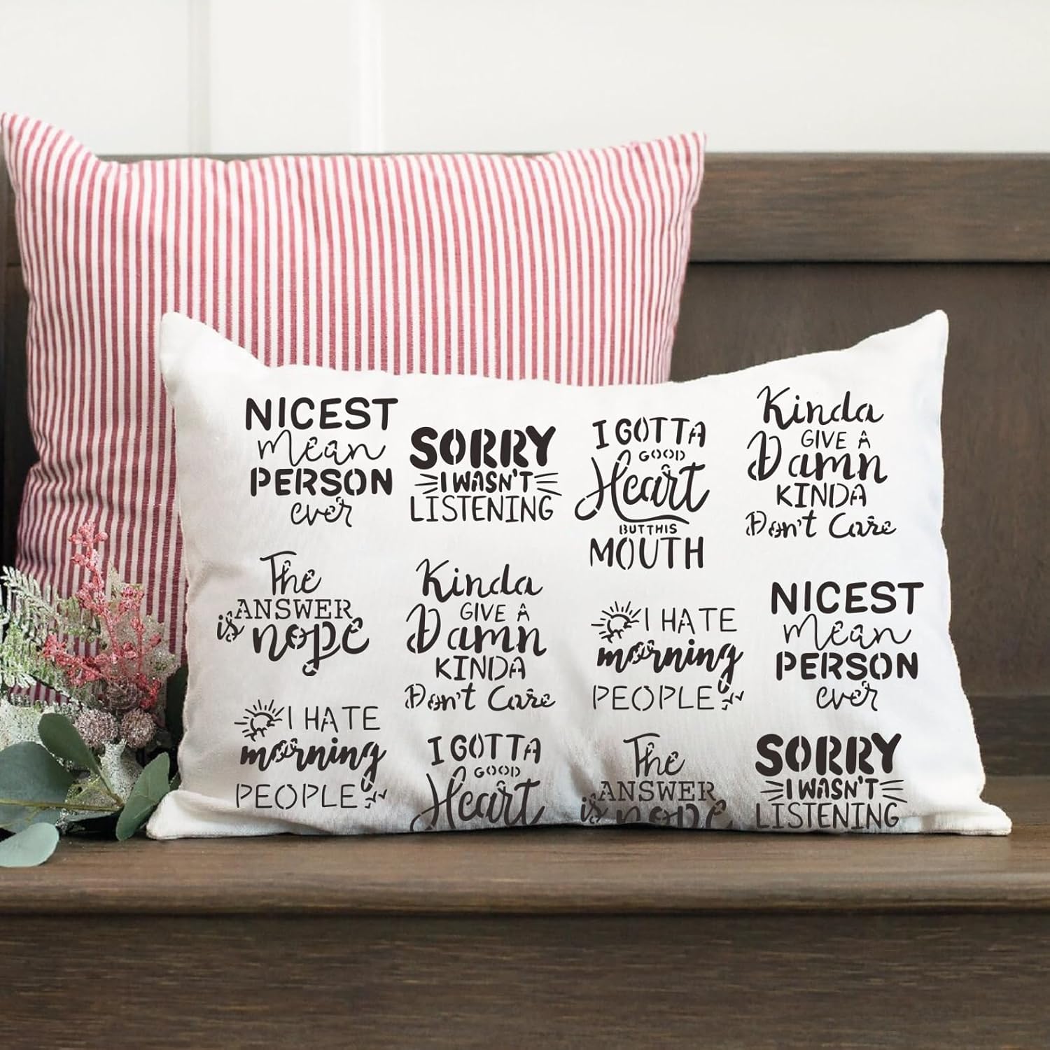 - Sarcastic Stencil:Various sarcastic themed patterns for your crafts needs.Great for Decorating your fabrics,wood signs, furniture and cards.