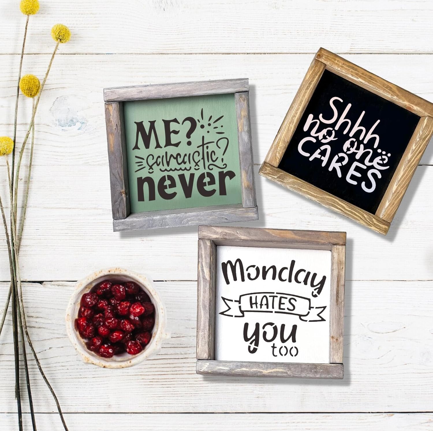 - Package Includes:42pcs sarcastic stencils for painting on wood,each stencil is 3x3nch.