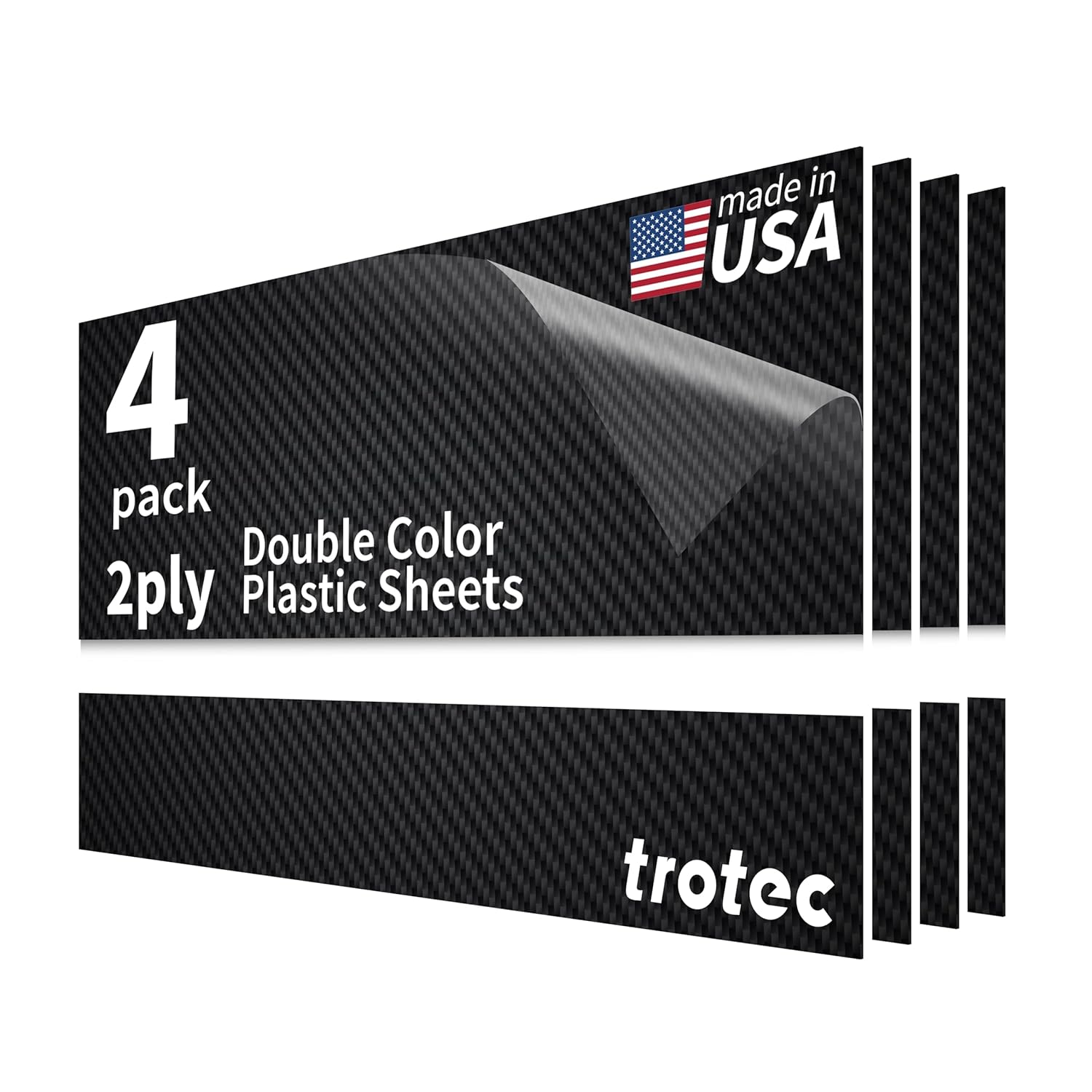 Trotec TroLase | 12"x24"x1/16", 4 Pcs | Carbon/White | 2 Ply | Modified Acrylic | Laser Engraving Double Color Plastic Sheet | Engraving Blanks for Laser, Saw, Guillotine | Made in USA