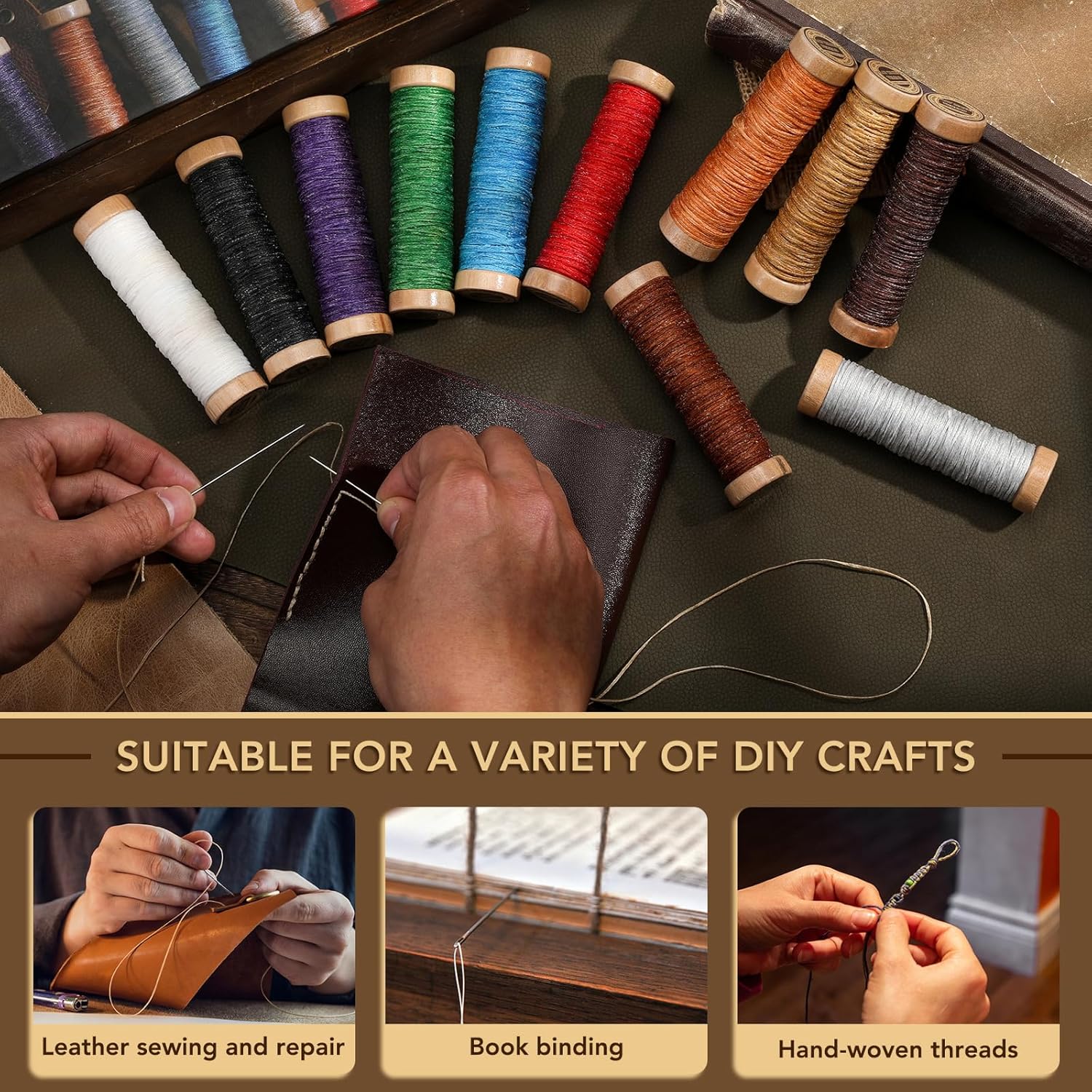 - Custom Storage Box: The leather sewing thread comes with a customized box, which has a reasonable internal structure and can neatly arrange multiple rolls of waxed thread for easy access and carry. The exquisite packaging design can be given to family or friends who like leather crafts