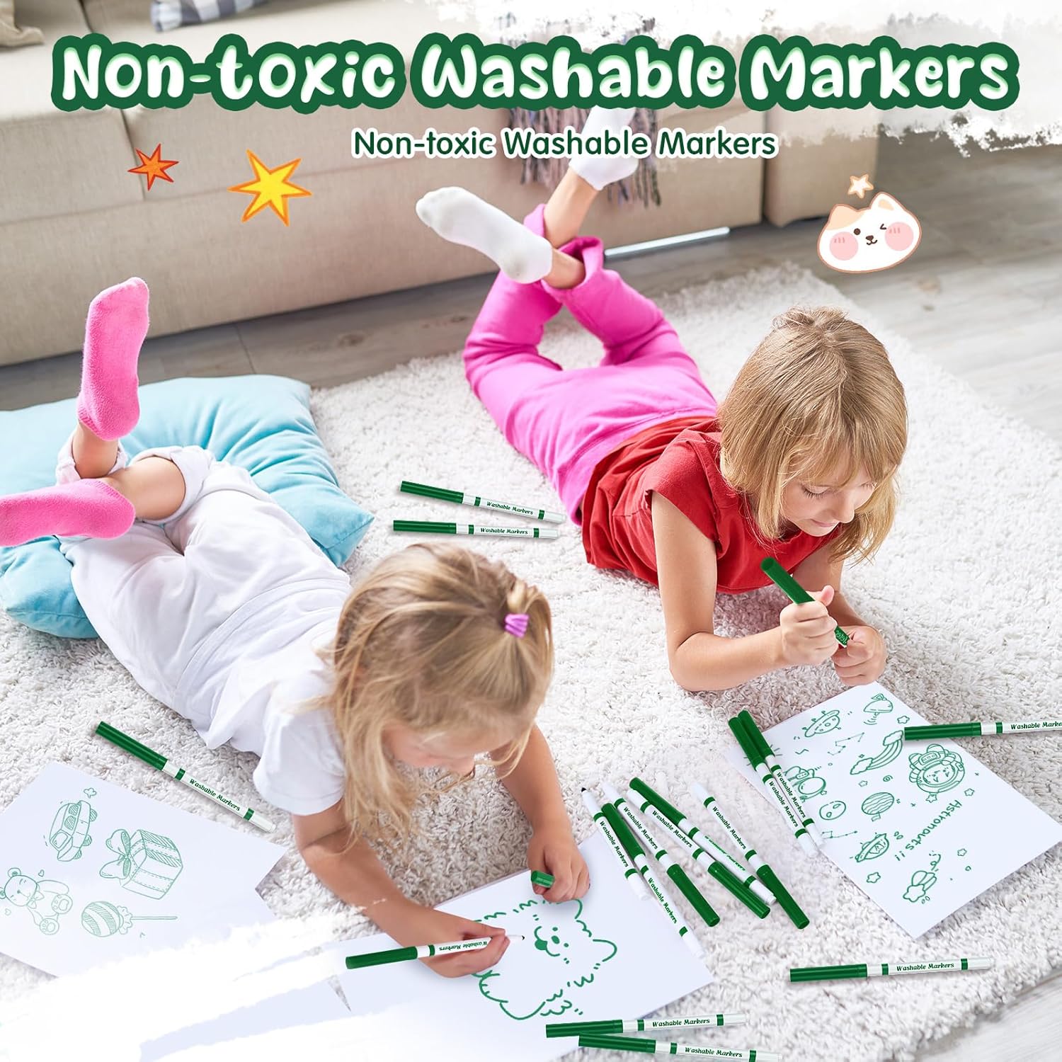 - Washable Markers: the ink of these coloring markers for kids can be easily washed off with soap and water from hands, skin, clothes, carpets, blackboards, tile walls, or most fabrics, so you don't have to worry about getting dirty