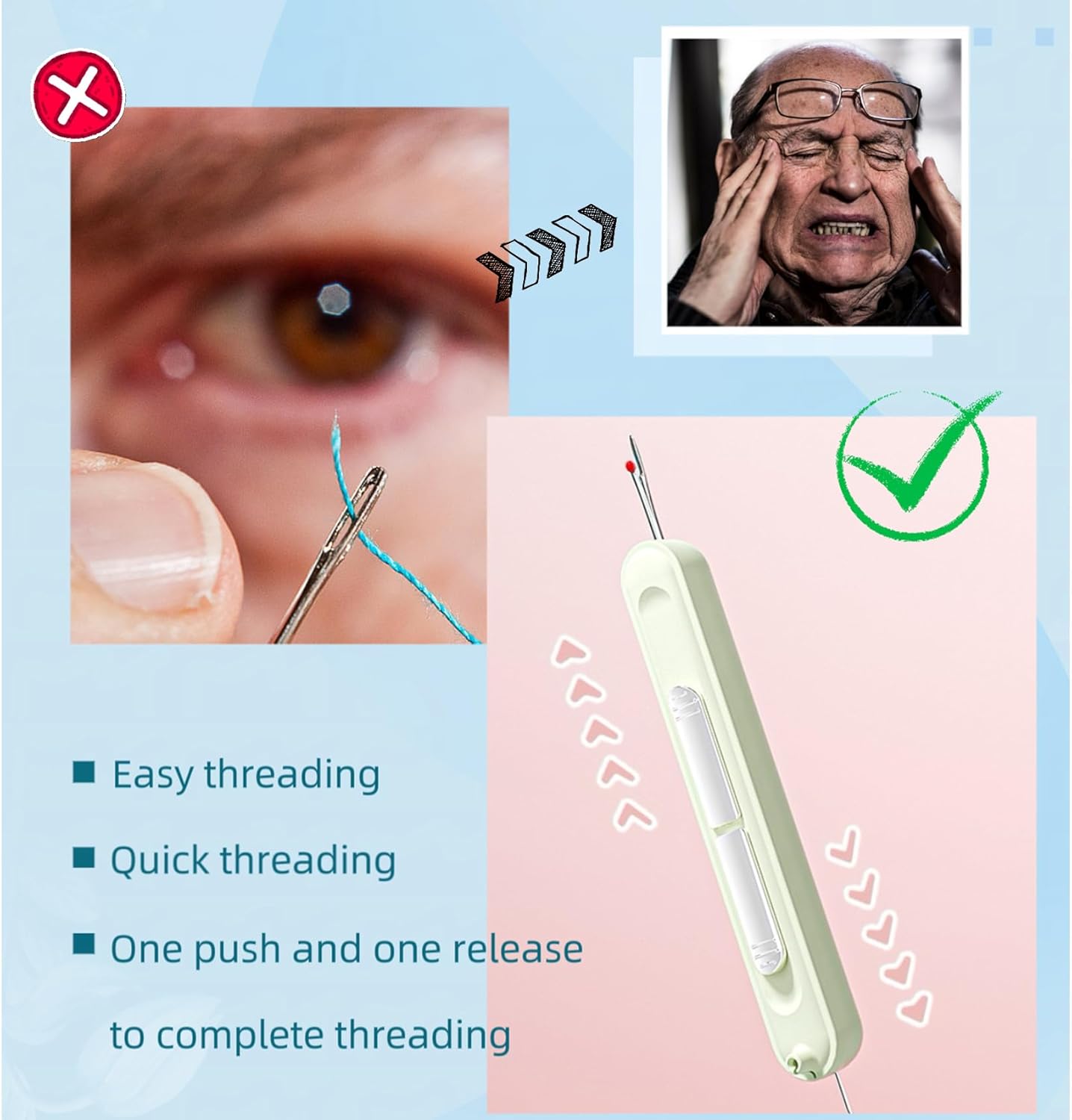 - Using it is a breeze! The unique double-headed design makes threading needles simple and swift. Just insert the threader into the eye of the needle, place the thread on it, and then pull it out gently. Voila, the threading problem is solved in an instant. Its compact size allows you to carry it around with ease, enabling quick repairs and adjustments wherever you are.