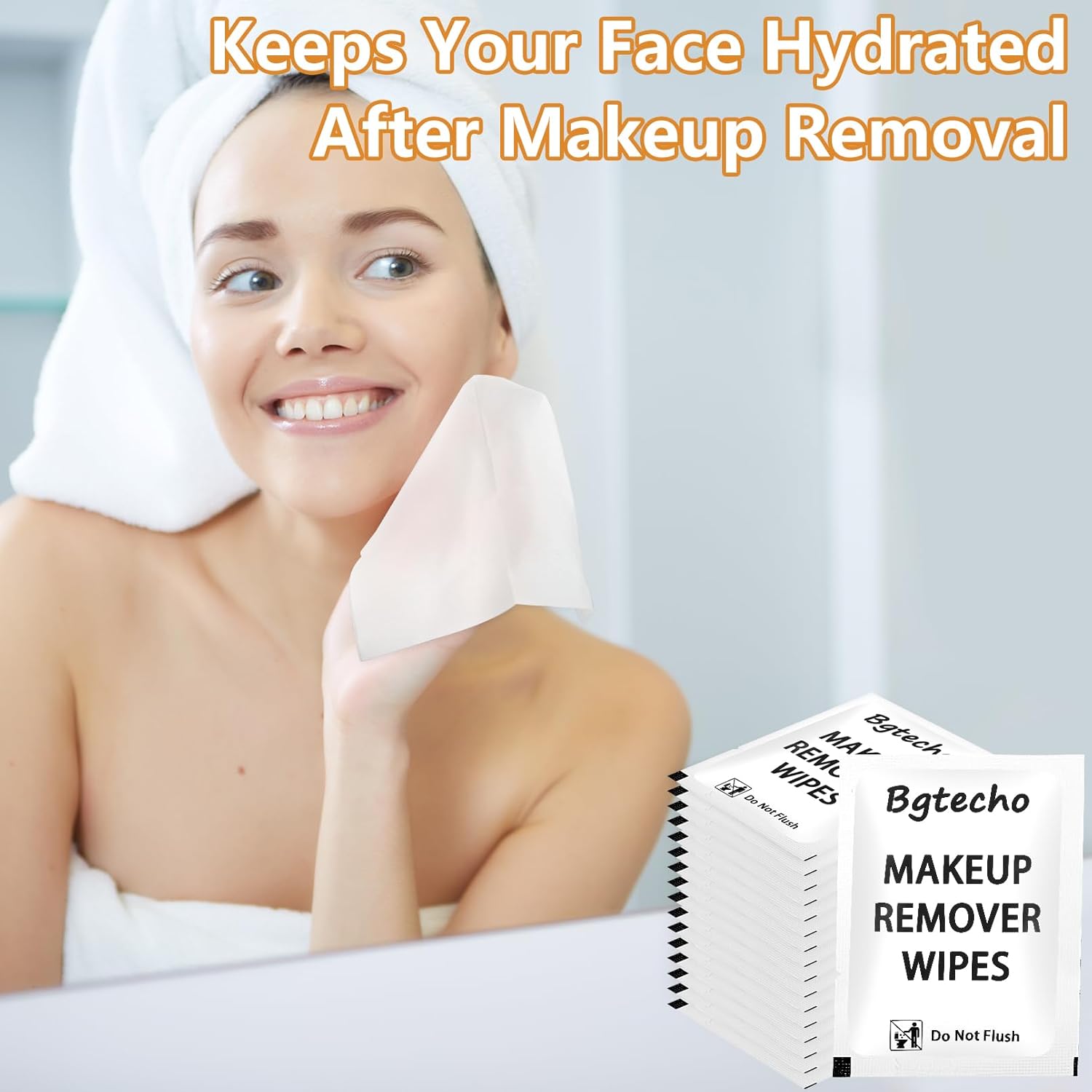 - High Quality Material: These individually wrapped makeup remover wipes are made of high-quality non-woven fabric, resistant to wear and tearing during use. They are durable and strong enough for effective makeup removal.