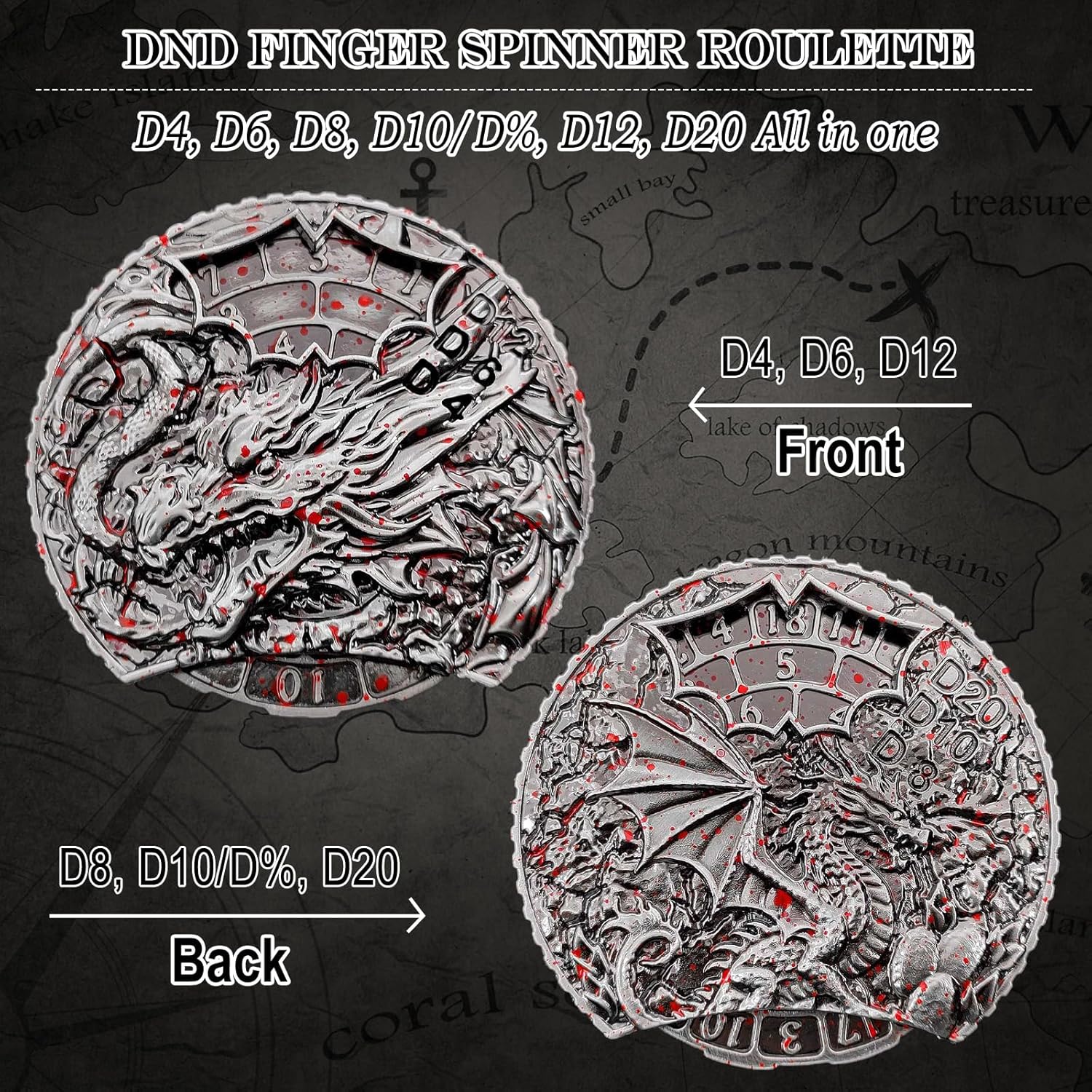 DND Dice Set Roulette: Fidget D4 D6 D8 D10 D10% D12 D20 All in One Metal D&D Spinner Dice - Cool Role Playing Dice Gifts for Dungeons and Dragons TRPG MTG Games Lover Players (Bloodstained)