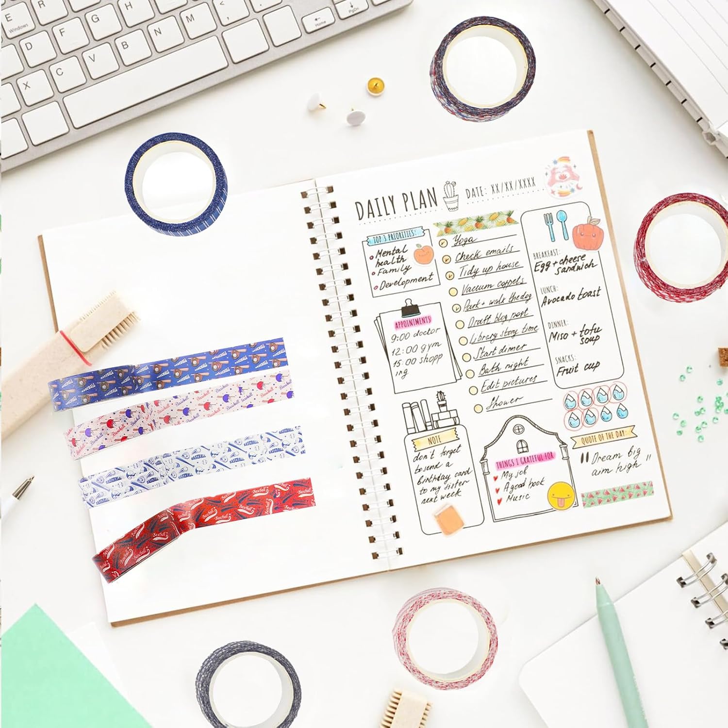- UNIQUE & EXQUISITE DESIGN: Our washi tapes feature designs including baseballs, players, club, and other related patterns. Their classic and sophisticated design, with blue, red, and white as the primary colors, creates a festive atmosphere.