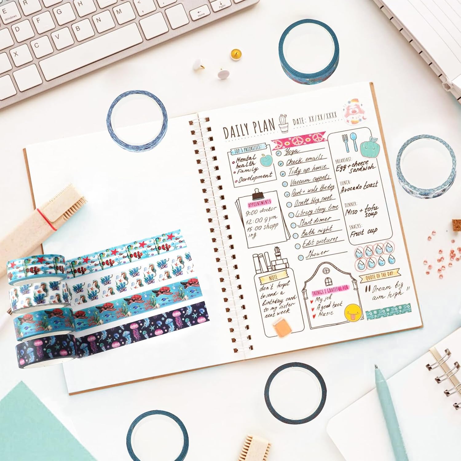- HIGH QUALITY: The underwater world washi tape is made of high-quality materials with nice stickiness, odorless, clear and vivid patterns, sturdy and durable. It is sturdy and durable, with a high-quality adhesive that holds securely on any surface without any tear or curling, and will not leave sticky traces after being removed. It also can be written with pencil or marker.