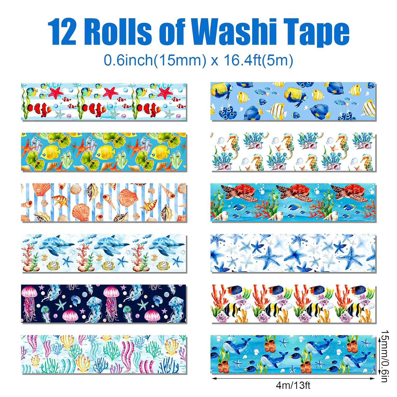 - VALUE PACKAGE: You will get 12 rolls of blue ocean-themed washi tapes, featuring a variety of sea animal patterns, perfect for your arts, crafts, and gift wrapping needs.
