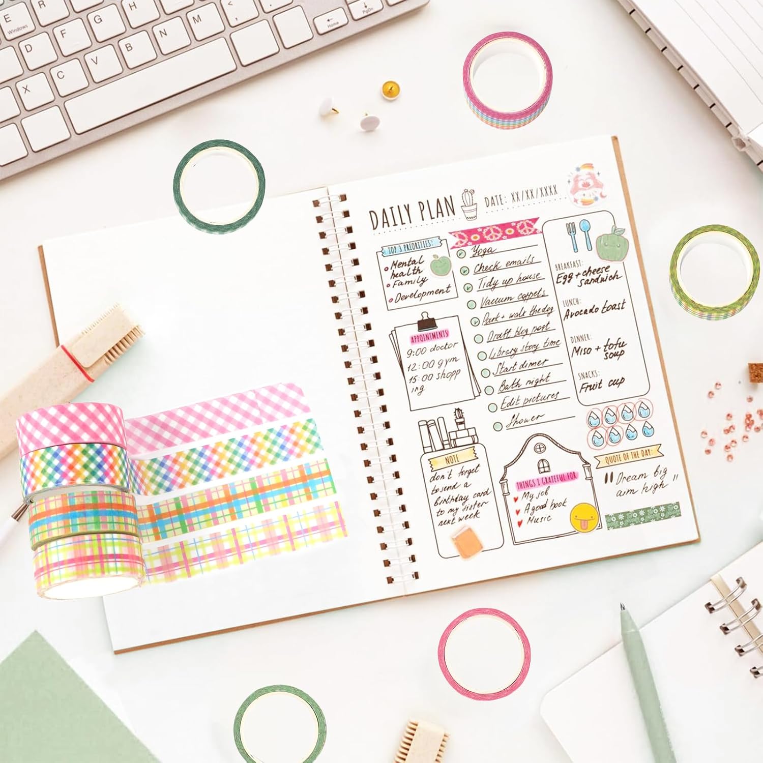 - WIDE APPLICATION: Our checkered washi tapes can be applied in various occasions, great for decorations of cardboard, journals and scrapbook. It's a beautiful gift for bullet journal lovers, craft friends, students, and good use on Easter, birthday, anniversary, holiday, wedding, baby shower and spring party, ideal for sticking photos on the wall or be used as masking tape for painting.