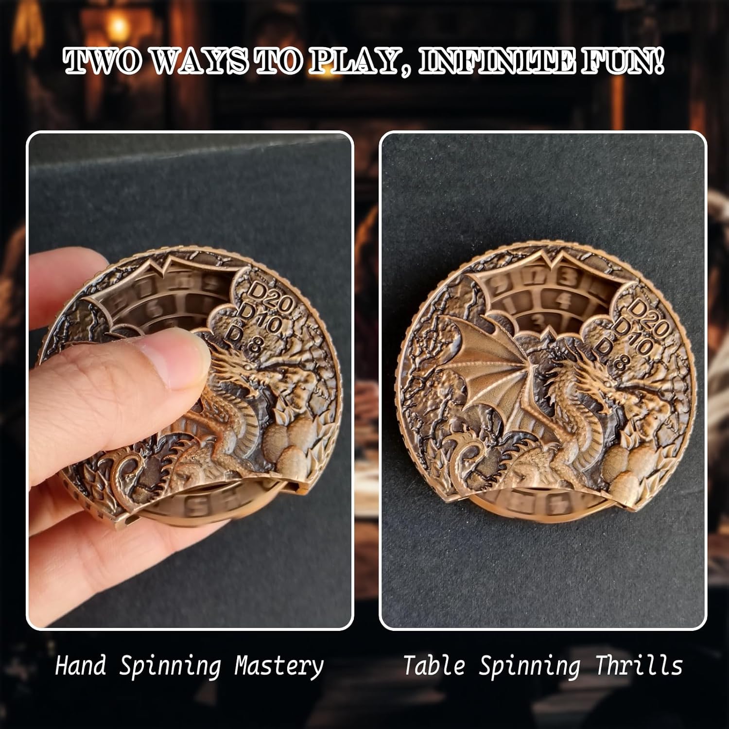 DND Dice Set Roulette: Fidget D4 D6 D8 D10 D10% D12 D20 All in One Metal D&D Spinner Dice - Cool Role Playing Dice Gifts for Dungeons and Dragons TRPG MTG Games Lover Players (Ancient Bronze)