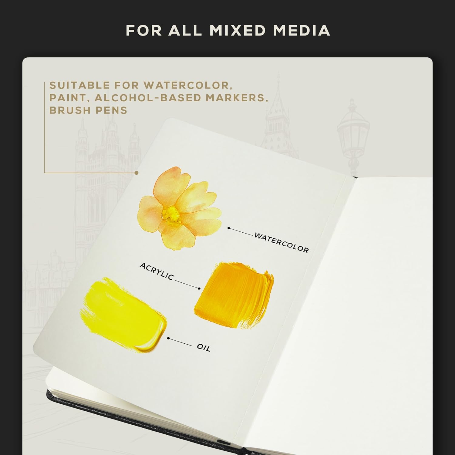 - Ultra-Thick 300 gsm Paper – Industry-Leading Strength – Handles heavy watercolor washes, gouache, ink, alcohol markers & mixed media with zero bleed-through buckling, outperforming 160-200 gsm rivals.