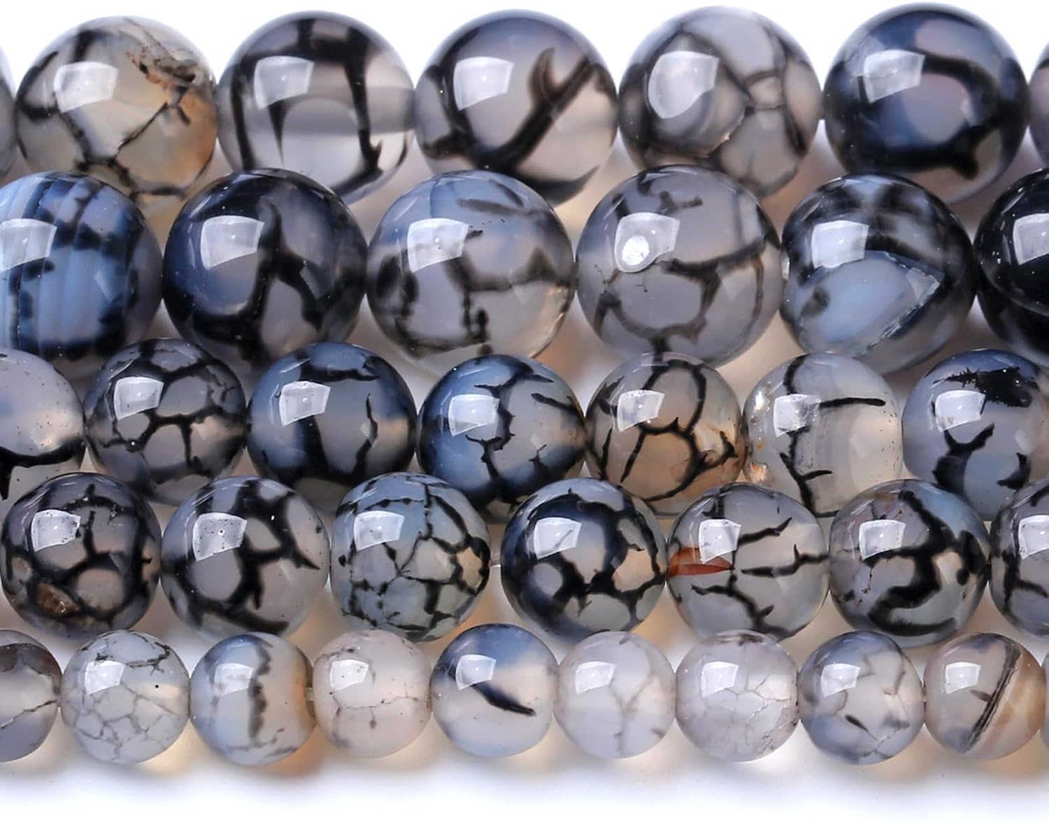 - Material: natural black dragon agate stone beads, round beads, highly polished, smooth, glossy surface, excellent polish