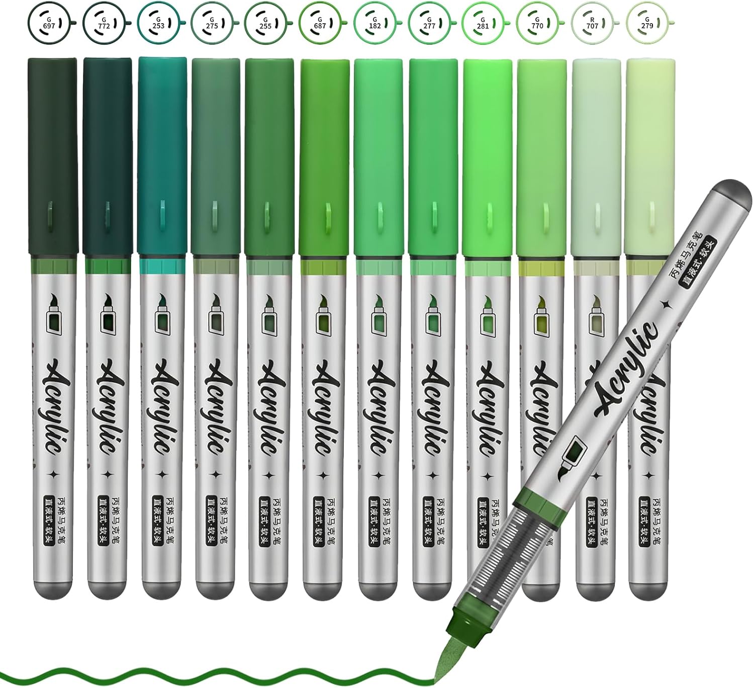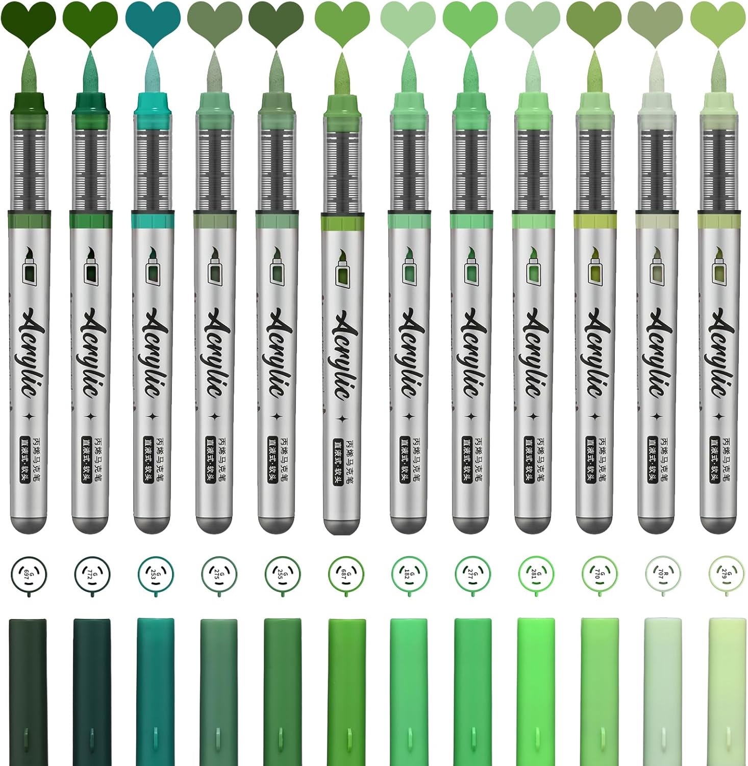 Green Acrylic Paint Pens,12 Color Paint Pens Markers,Brush Tip Paint Pens for Rock Painting Wood Glass Ceramic Canvas Stone DIY Crafts Making Art Supplies