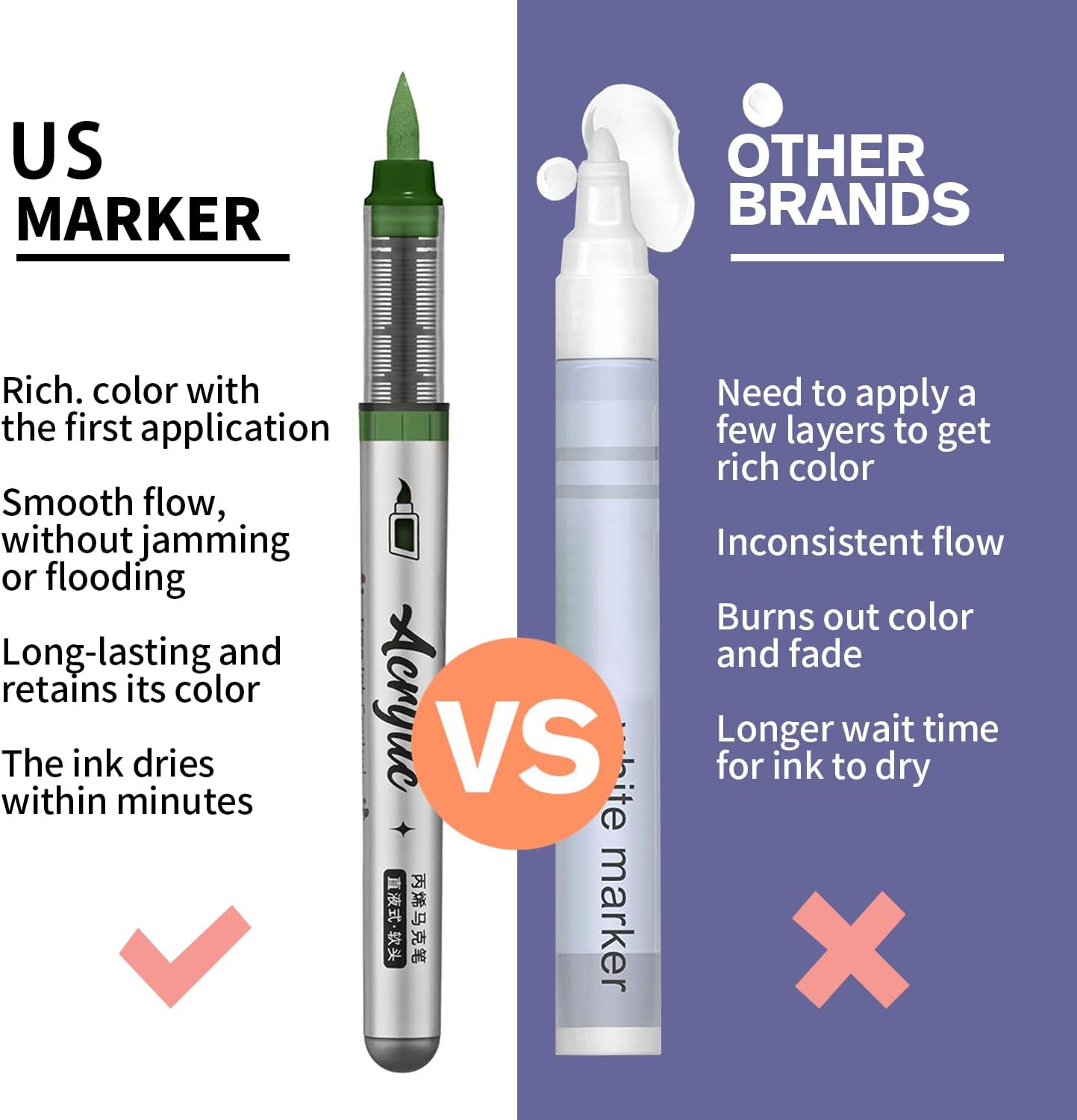 - Vibrant Colors: The acrylic paint pens set includes red&pink/green/orang&yellow/blue/purple/skin tone/gery color sets,you can choose according to your color needs.This acrylic paint markers set unleashes your imagination with endless possibilities for your creative projects