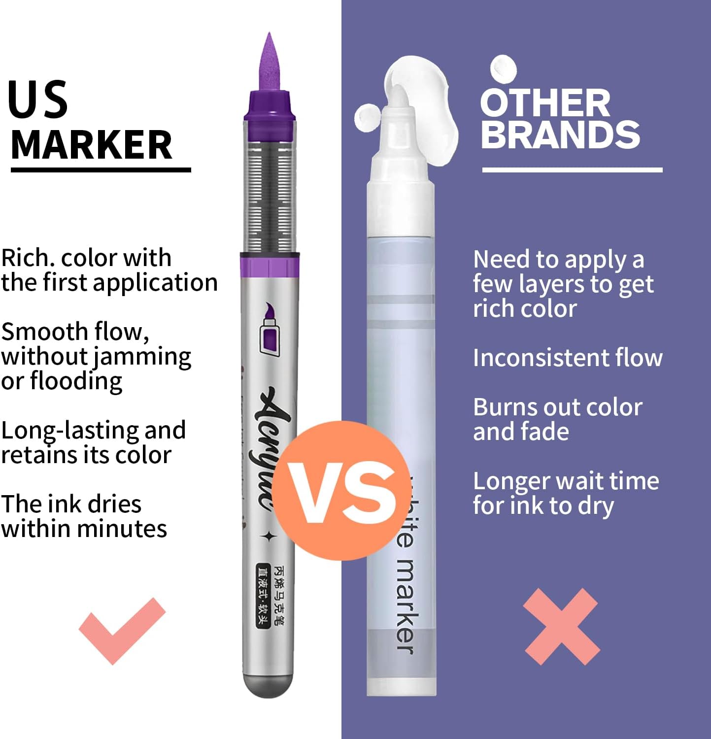 - Vibrant Colors: The acrylic paint pens set includes red&pink/green/orang&yellow/blue/purple/skin tone/gery color sets,you can choose according to your color needs.This acrylic paint markers set unleashes your imagination with endless possibilities for your creative projects
