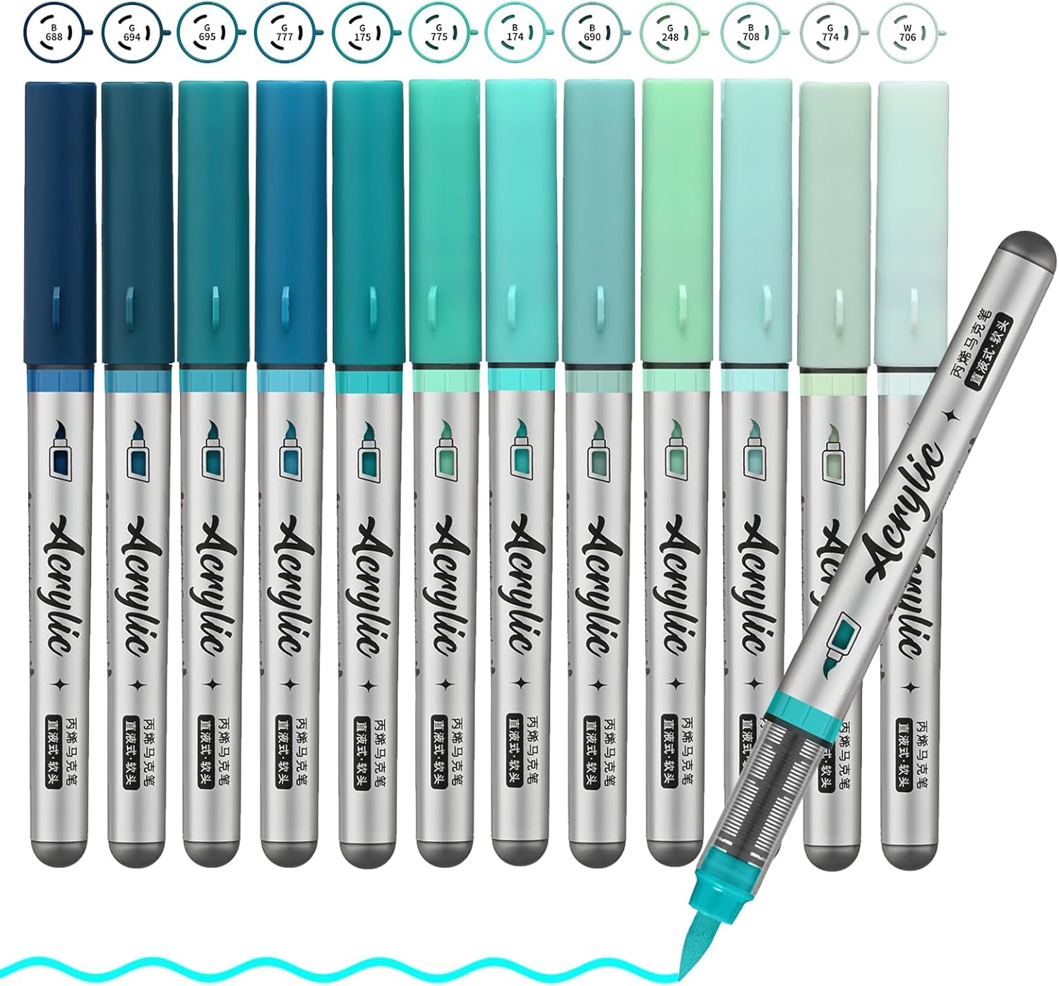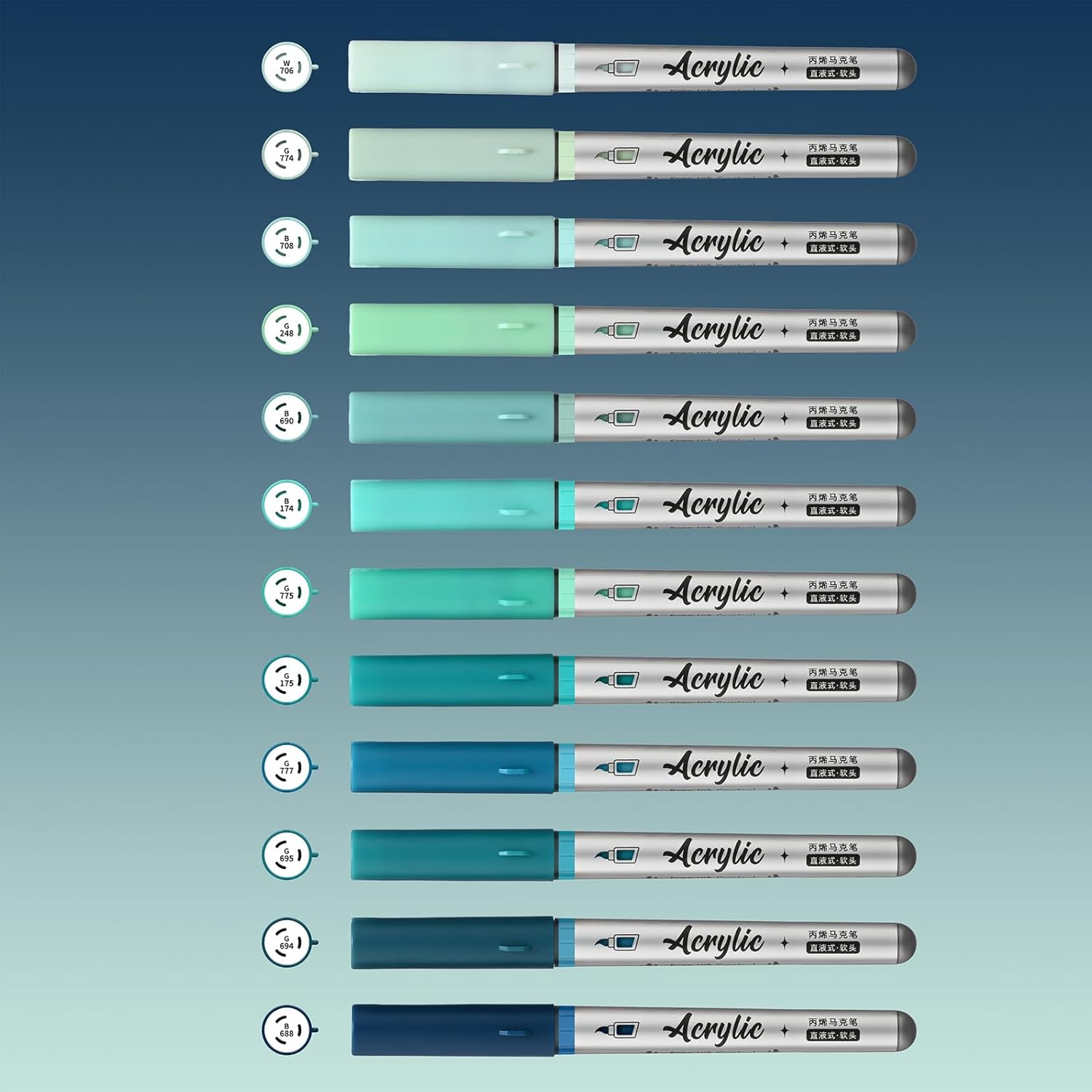 Mint Green Acrylic Paint Pens,12 Color Paint Pens Markers,Brush Tip Paint Pens for Rock Painting Wood Glass Ceramic Canvas Stone DIY Crafts Making Art Supplies