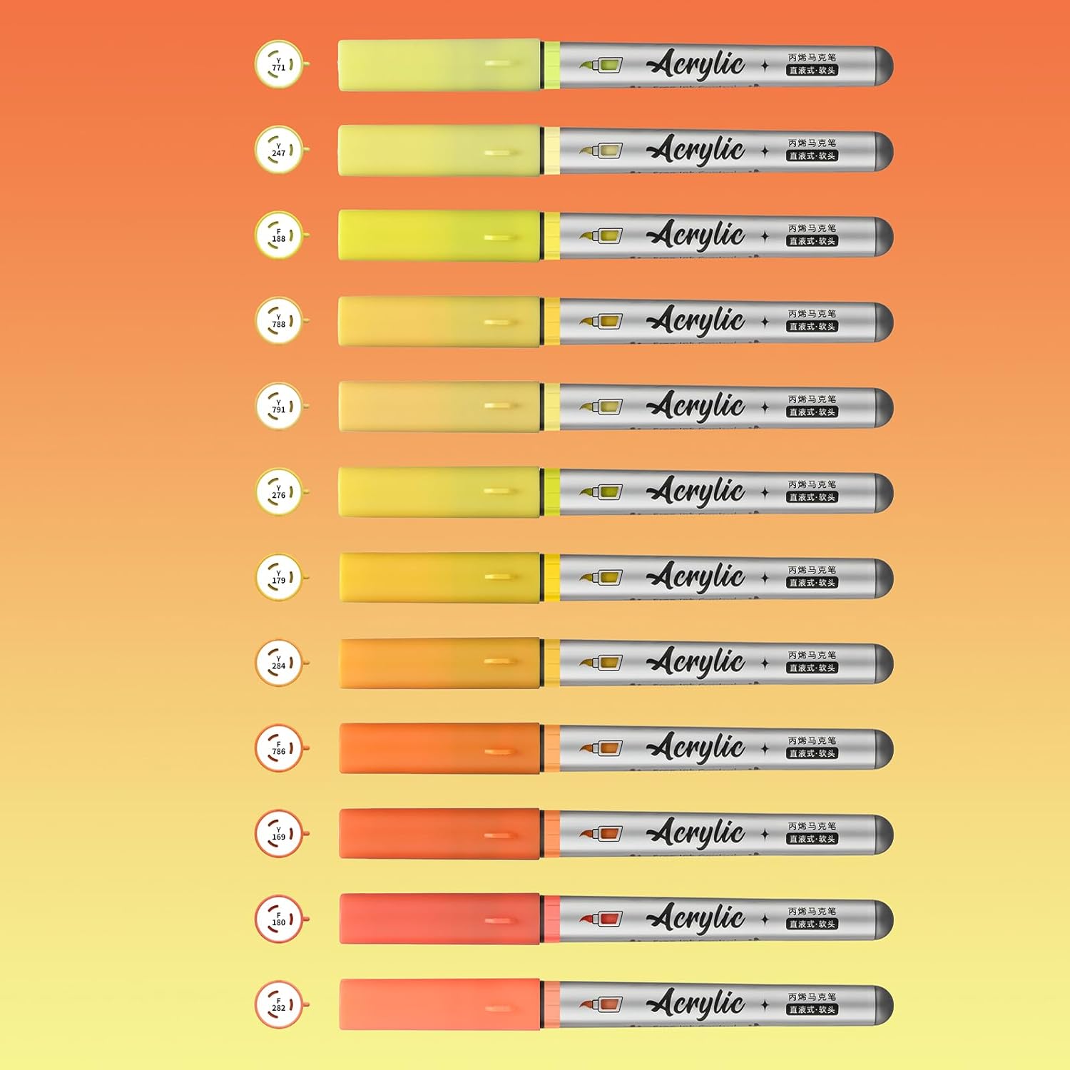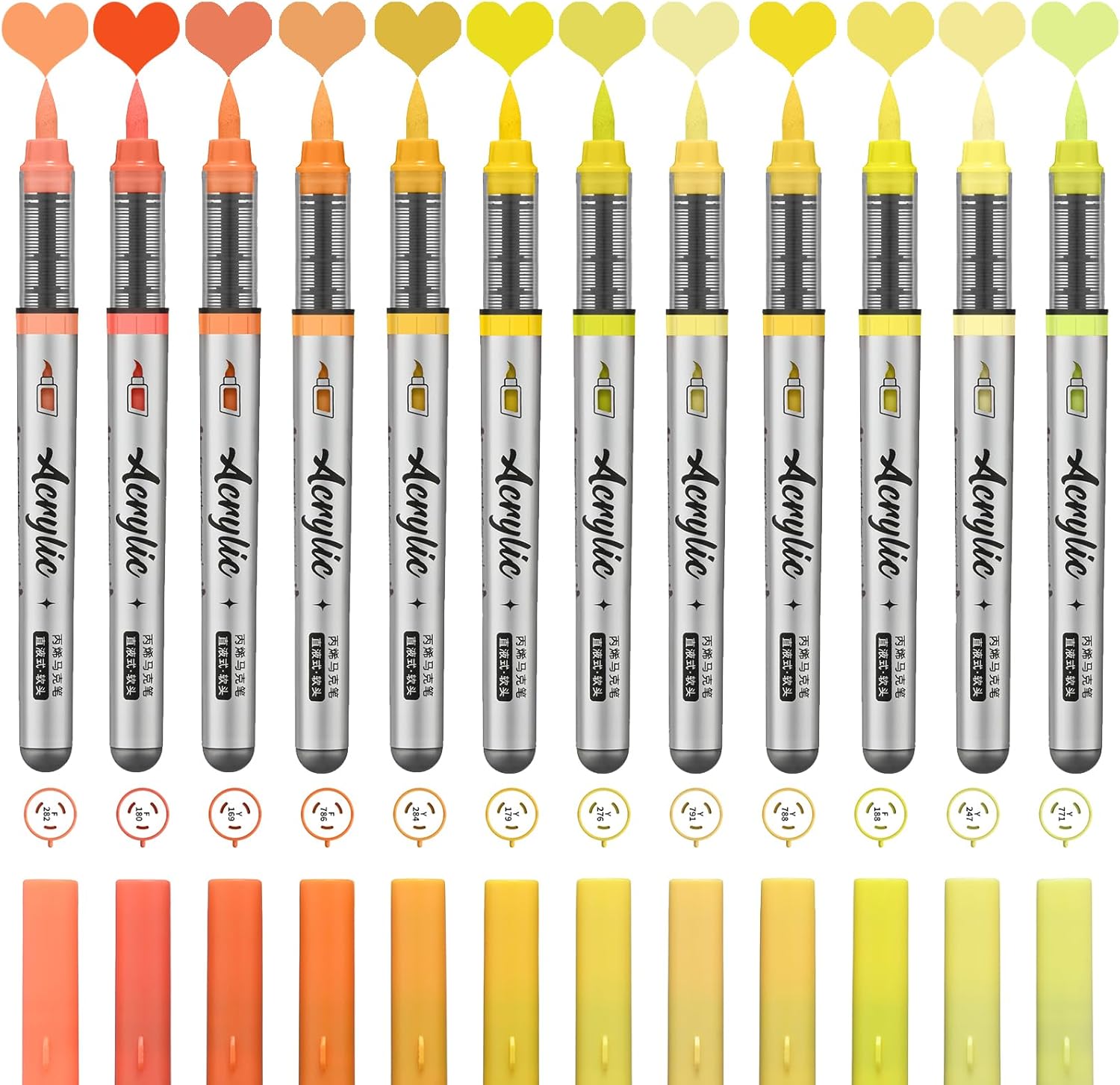 Yellow Orange Acrylic Paint Pens,12 Color Paint Pens Markers,Brush Tip Paint Pens for Rock Painting Wood Glass Ceramic Canvas Stone DIY Crafts Making Art Supplies