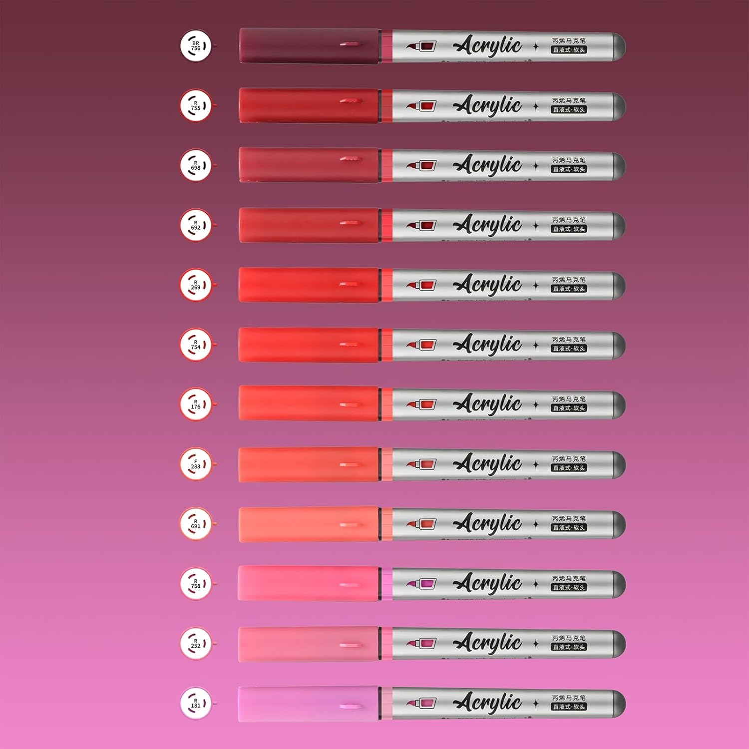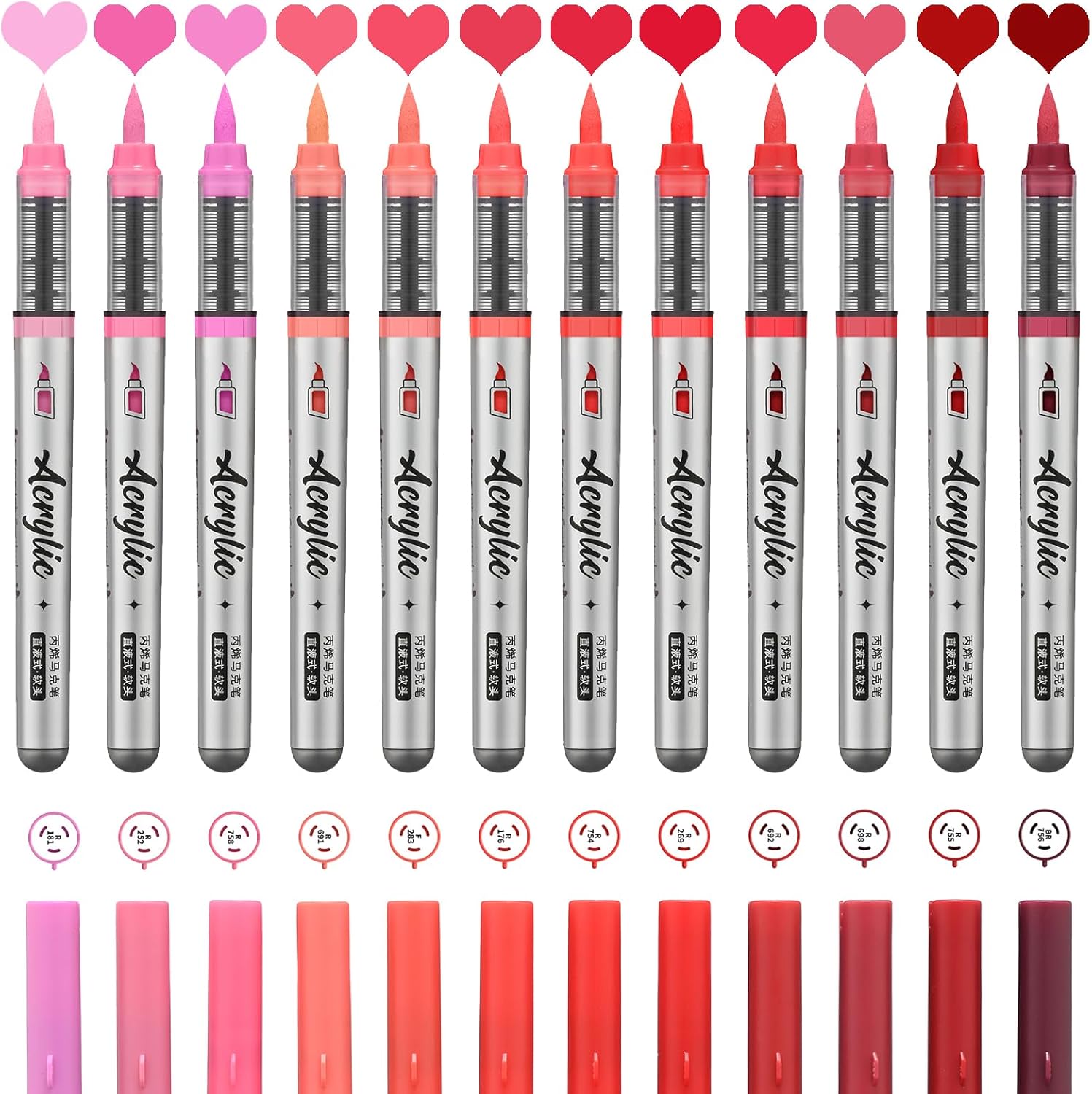 Red Acrylic Paint Pens,12 Color Paint Pens Markers,Brush Tip Paint Pens for Rock Painting Wood Glass Ceramic Canvas Stone DIY Crafts Making Art Supplies