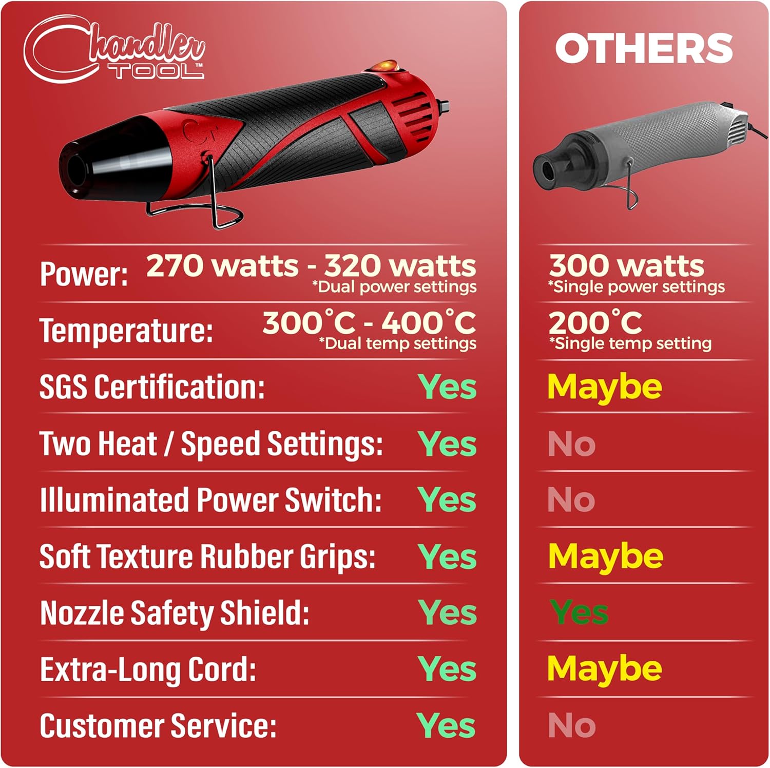 - ▶ Variable Speed & Heat: Our heat gun for crafts has dual temperature and speed settings - low speed & heat for delicate or detail work and high speed & heat for heavy duty or high volume work. It’s like having a mini heat gun and a full size heat gun in one!