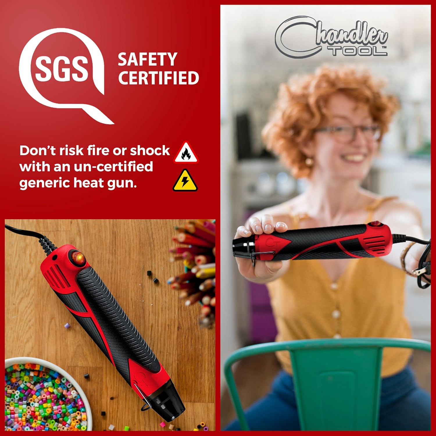 Heat Gun for Crafting, Mini Dual Temp Hot Air Gun Tool for Epoxy Resin, Shrink Wrapping, Vinyl Wrap, Embossing, Electronics, Candle Making, Sublimation, Phone Repair & DIY (Red/Black)