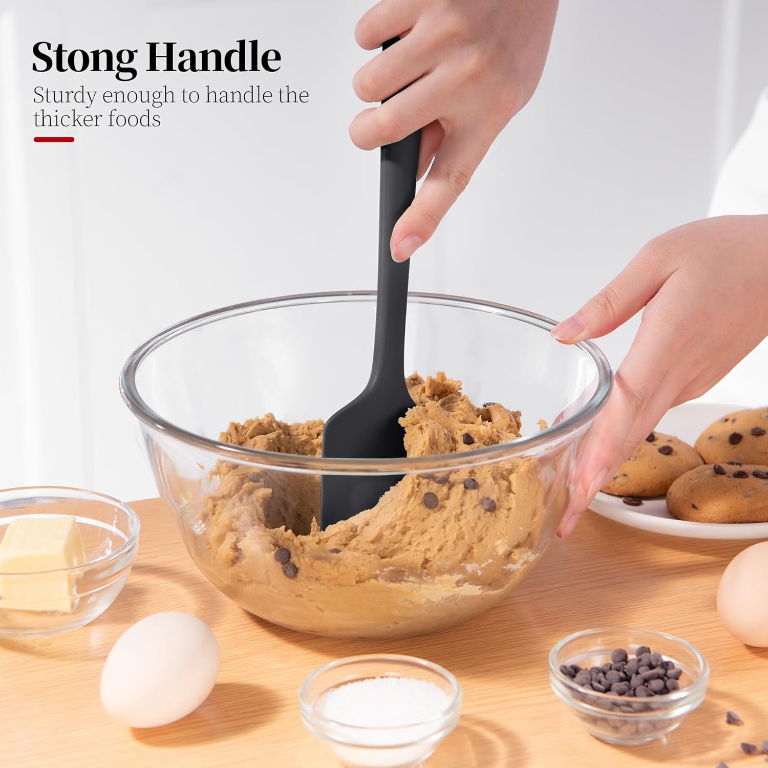 - The right amount of flexibility and firmness- When folding delicate ingredients like whipped cream, egg whites, meringue, flexible edge allows baking spatula to glide smoothly along and scrape down the sides of mixing bowl. For cake decorating, the slightly tapered edge helps spread frosting smoothly and evenly.The solid core and robust construction prevent mixing spatula from bending or breaking under repeated pressure, especially when used to stir thick batters for cookies, or brownies.