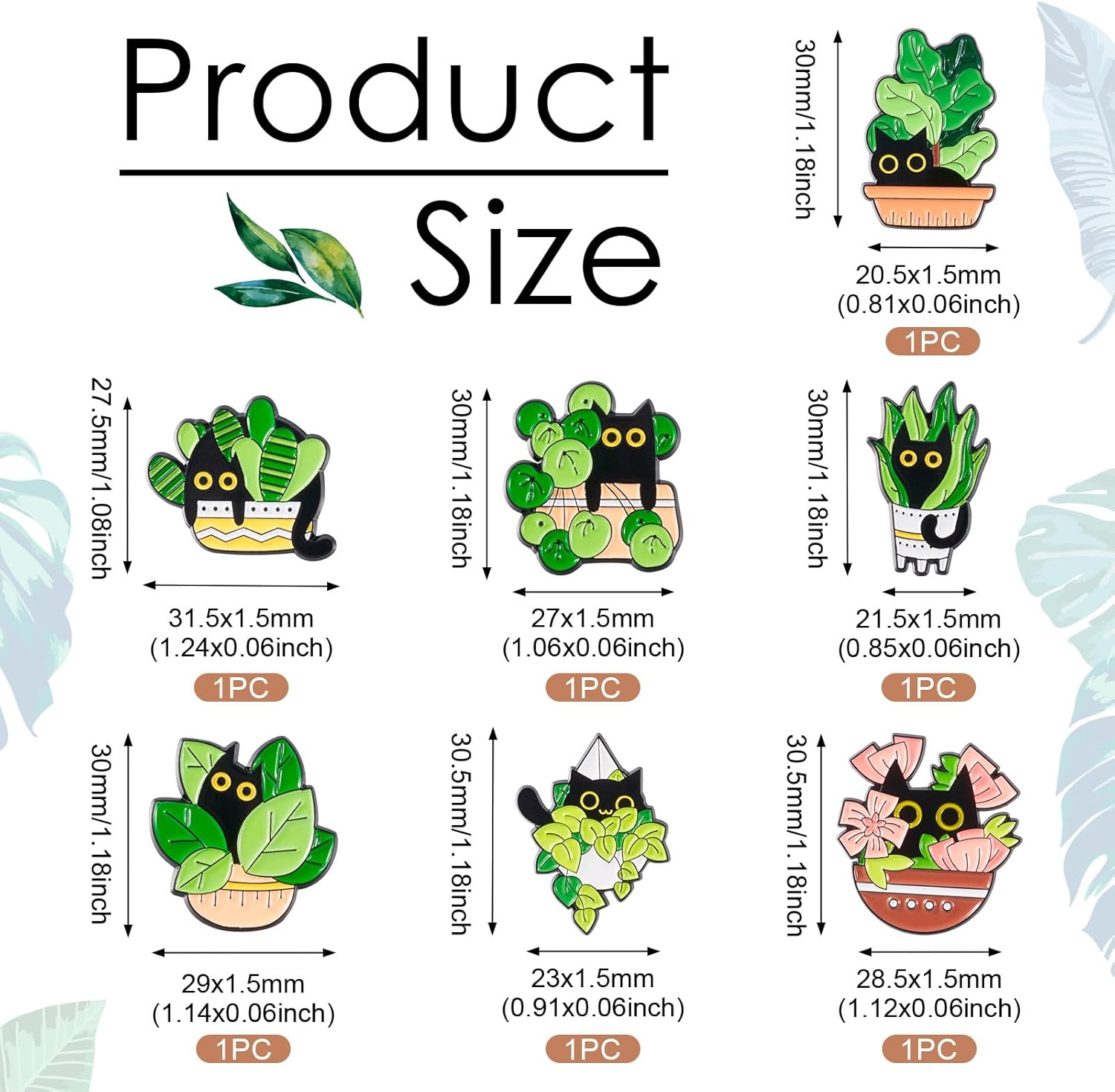 - What You Will Receive: 7pcs cute cat with green leaf potted plant enamel brooch pins, each pattern is artistically designs, the pins will make your clothing and backpacks more attractive and special.