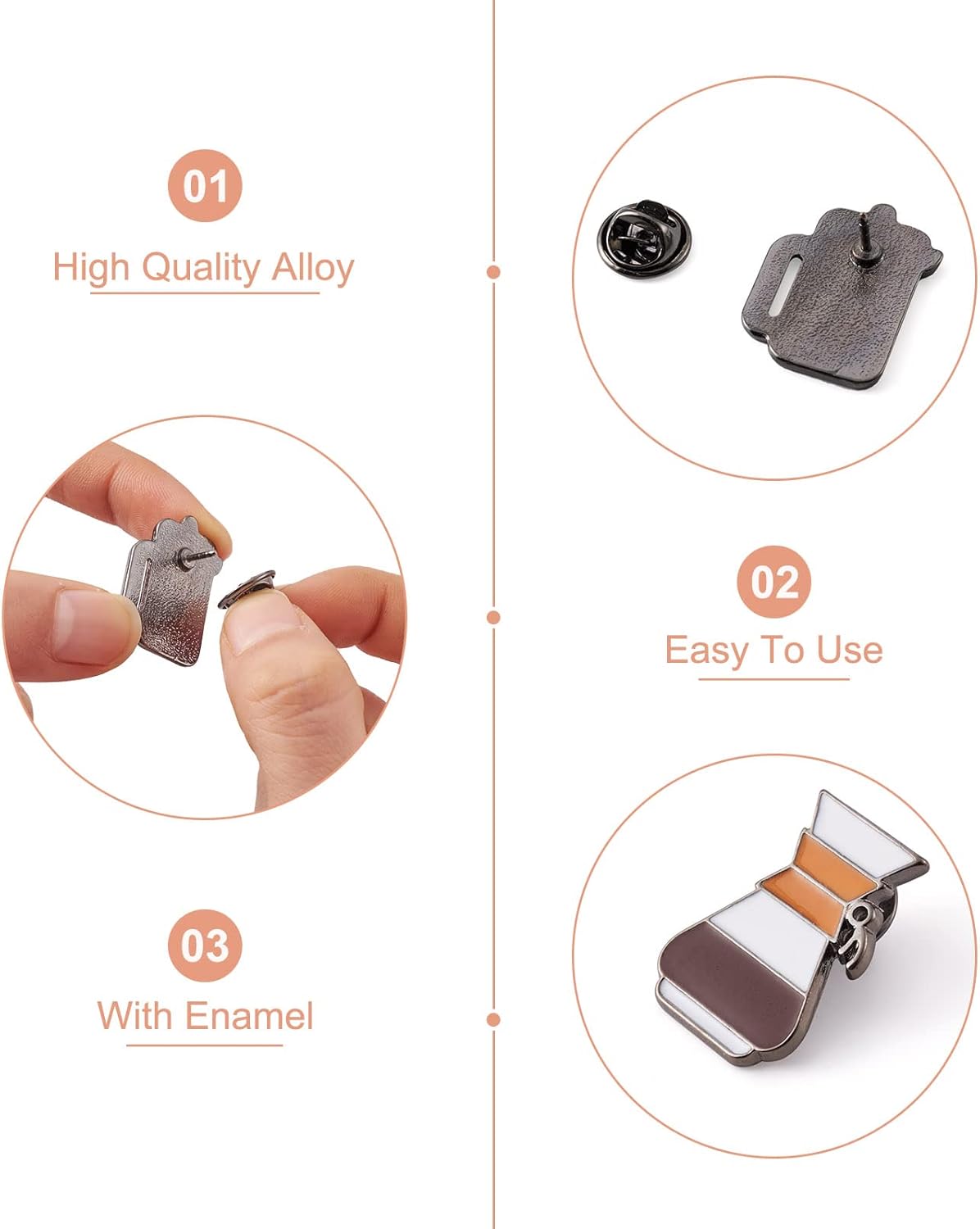 - Easy to Use: The backside of the enamel pins feature a butterfly clasp design which helps you attach the brooch pin on your clothes and bag effortlessly, simple to wear and remove. It's perfect for sharing with friends or adding a personal touch to any outfit. Make a statement with our stylish brooch pins today.