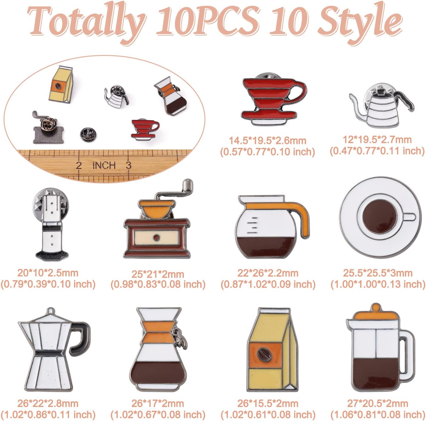 - What You Will Receive: 10pcs coffee enamel brooch pins, each pattern is artistically designs, the pins will make your clothing and backpacks more attractive and special.