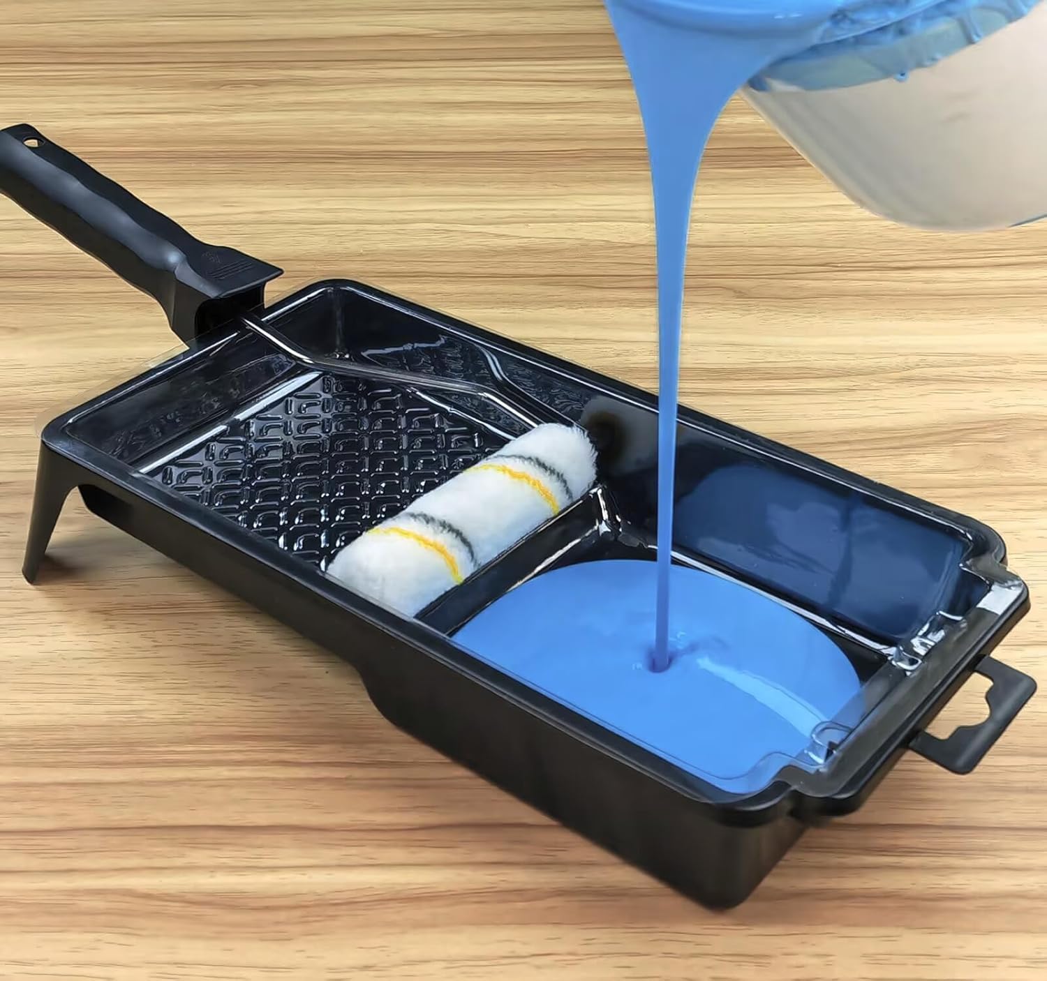 - Paint roller trays are 2 inches deep to hold more paint, textured liner helps filter excess paint, reduces drips.