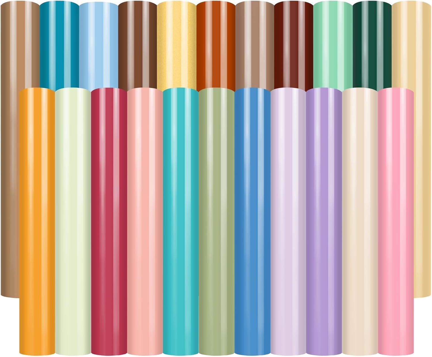 - 【Vivid Colors】HTVRONT Boho heat transfer vinyl boasts 22 vibrant colors, accompanied by a Teflon sheet, and spans an impressive 12x10 feet. It includes a range of hues such as beige, brown, tan, and light purple HTV, among others, providing ample material to craft and elevate your DIY projects