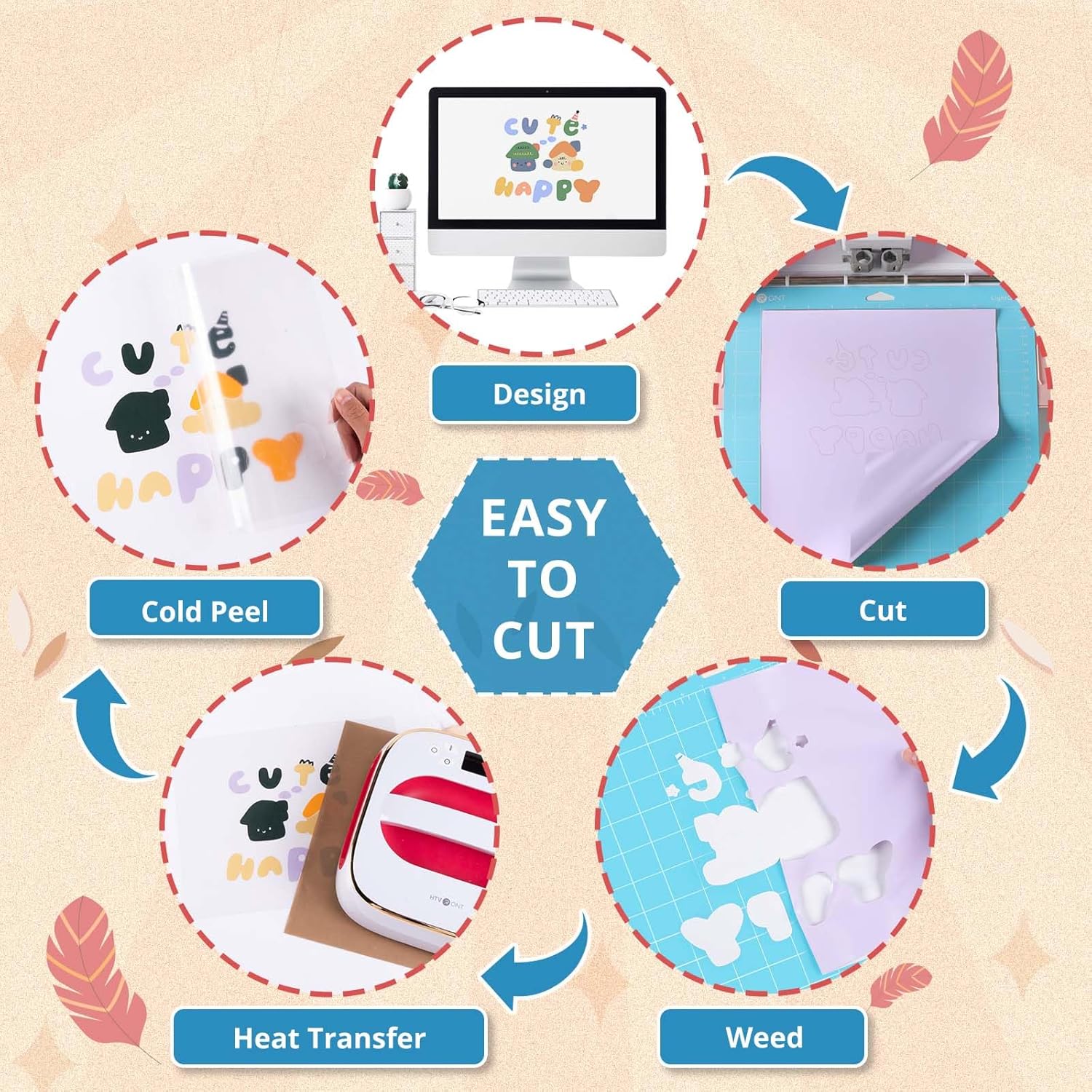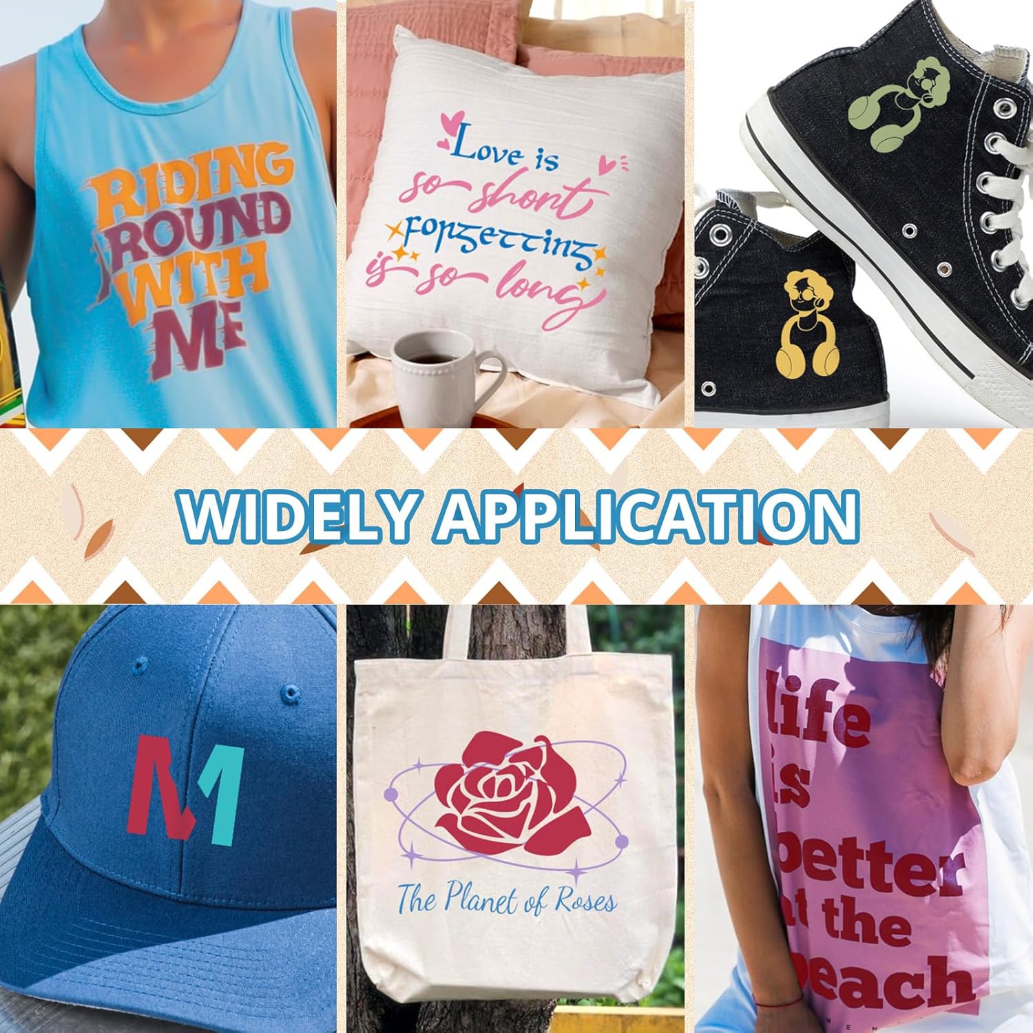 - 【Robust Adhesion & Longevity】Our heat transfer vinyl boasts exceptional adhesive properties, capable of enduring numerous washes without fading, cracking, or peeling off. Our soft HTV vinyl is highly elastic, stretchable, and resistant to deformation. For the first wash, please wait for 24 hours.